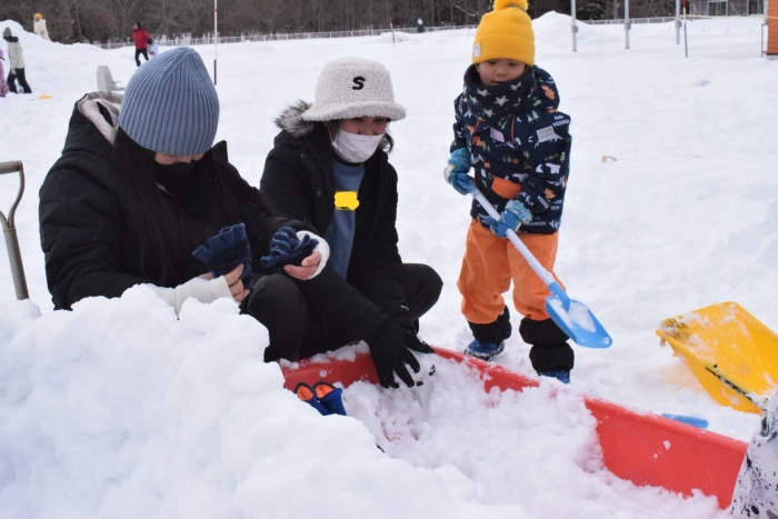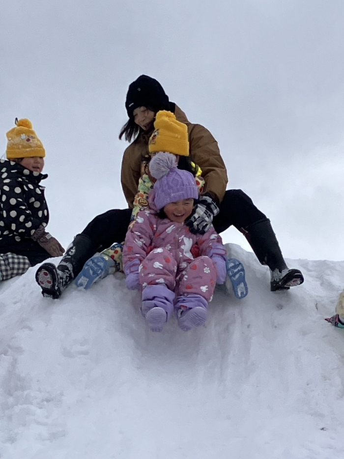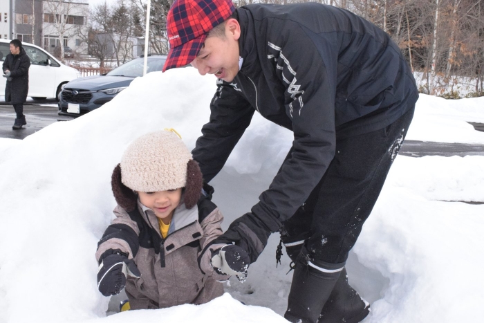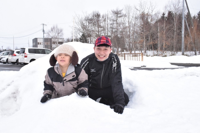 雪が降らないベトナムでは雪遊びの経験はないのではないかと思い、そり遊びやかまくら作りで雪や子ども達とたくさん触れ合ってもらいました。自分たちだけでは難しかったところを手伝ってもらい、大きなかまくらやさくらさんの家の壁も大きく進展し、形が出来てきました(^^)/ いつもの仕事よりもかなり疲れたことと思いますが、ずっと優しい笑顔で子ども達と触れ合ってくれたことに感謝です(*^-^*)