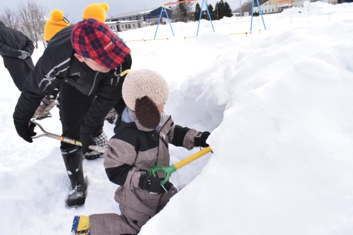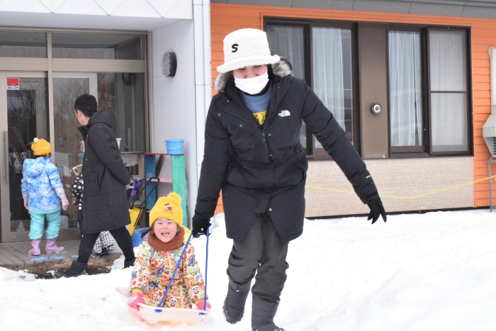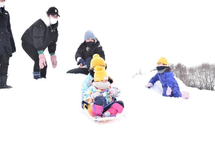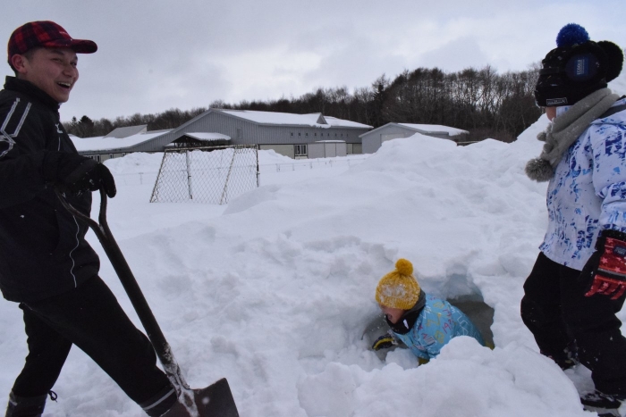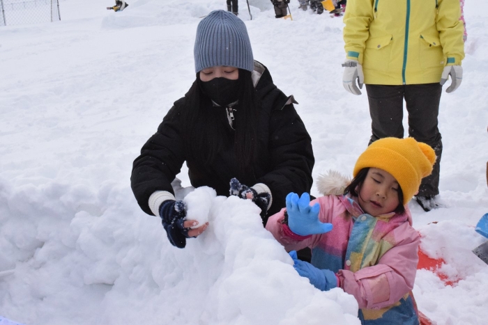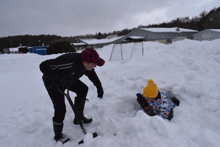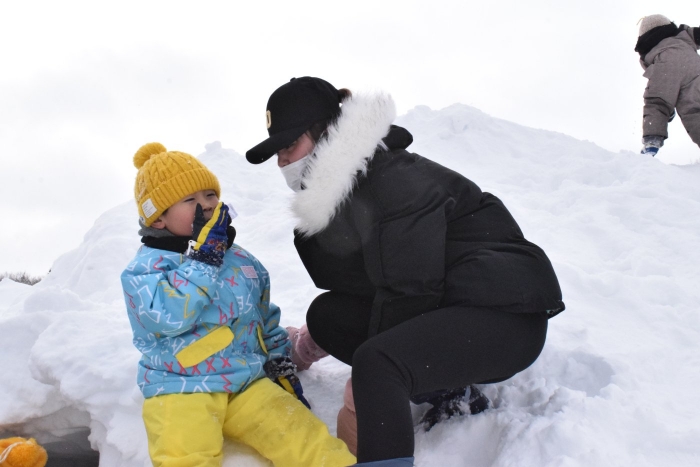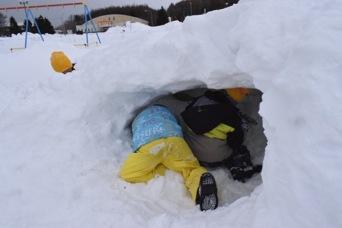 雪が降らないベトナムでは雪遊びの経験はないのではないかと思い、そり遊びやかまくら作りで雪や子ども達とたくさん触れ合ってもらいました。自分たちだけでは難しかったところを手伝ってもらい、大きなかまくらやさくらさんの家の壁も大きく進展し、形が出来てきました(^^)/ いつもの仕事よりもかなり疲れたことと思いますが、ずっと優しい笑顔で子ども達と触れ合ってくれたことに感謝です(*^-^*)