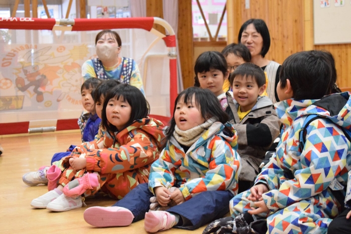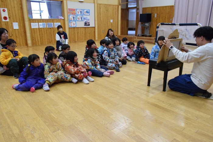 全園児に面白い紙芝居を読んでくれました。お休みのところ、ありがとうございました!