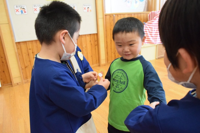 この日のために作っていた動物メダルを首にかけてプレゼント!