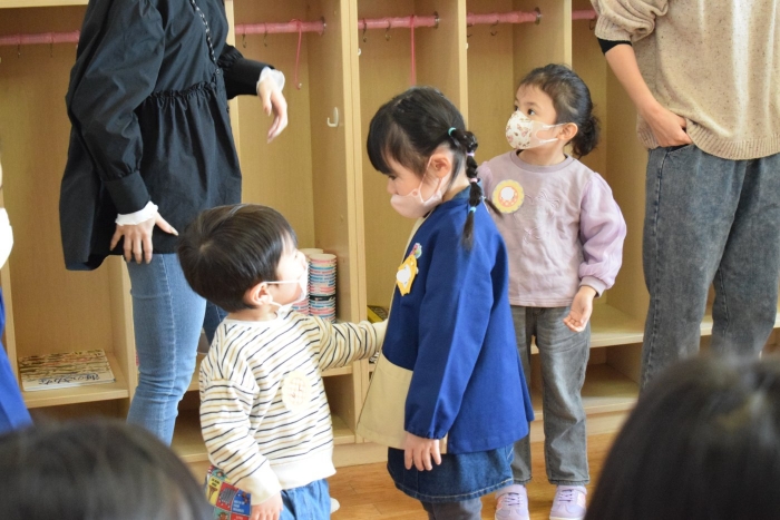 今日は来年度入園する6名のお友だちの一日入園がありました。いよいよ新年度も目の前に迫ってきました、月日の流れるのは早いものですね~( ;∀;) 園児数も増加の兆しはなく、少人数のクラスになりますが、来年度のクラスは人数の少なさを感じさせないほどのパワーあふれる子ども達が多いようでとても楽しみです(^^)/