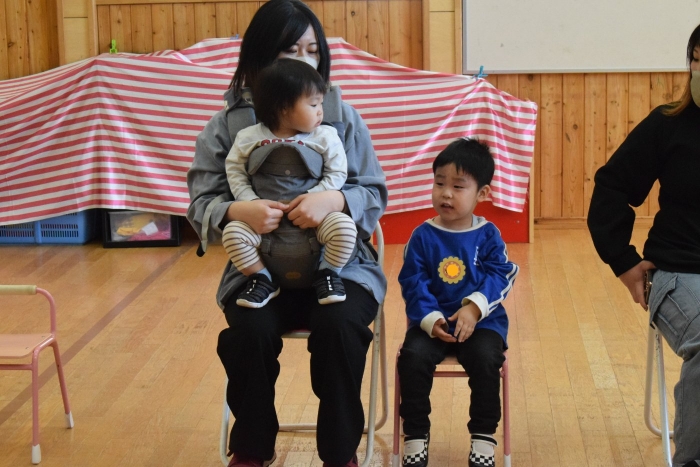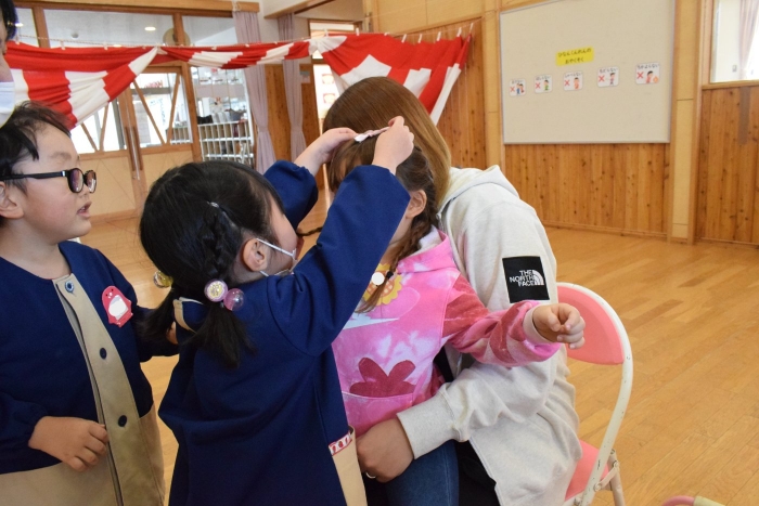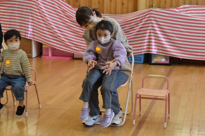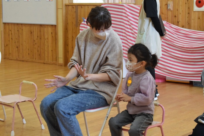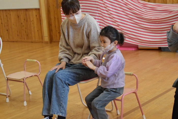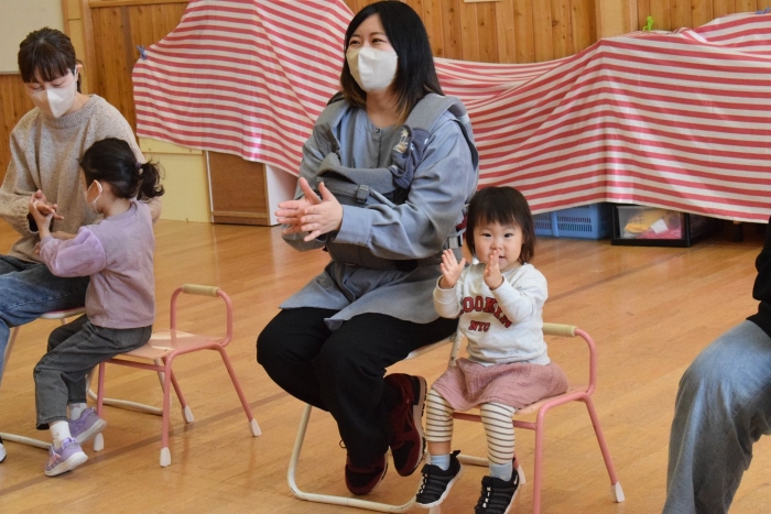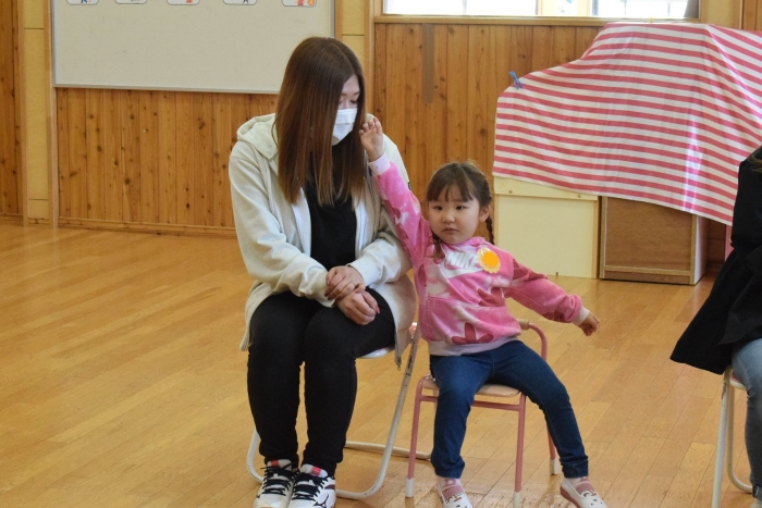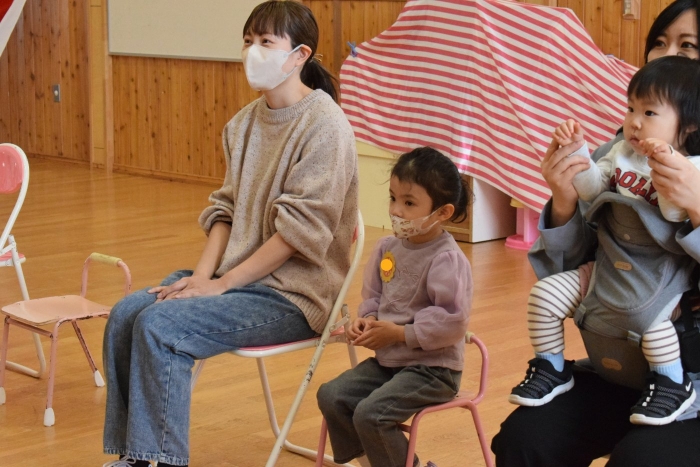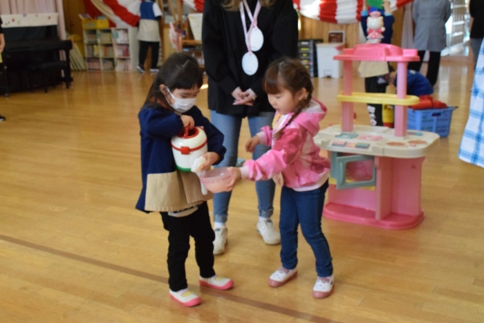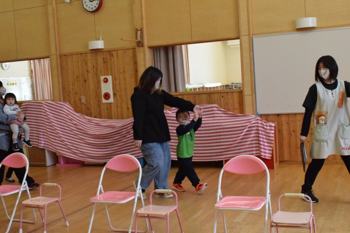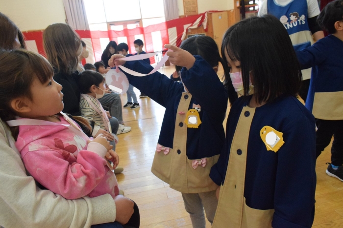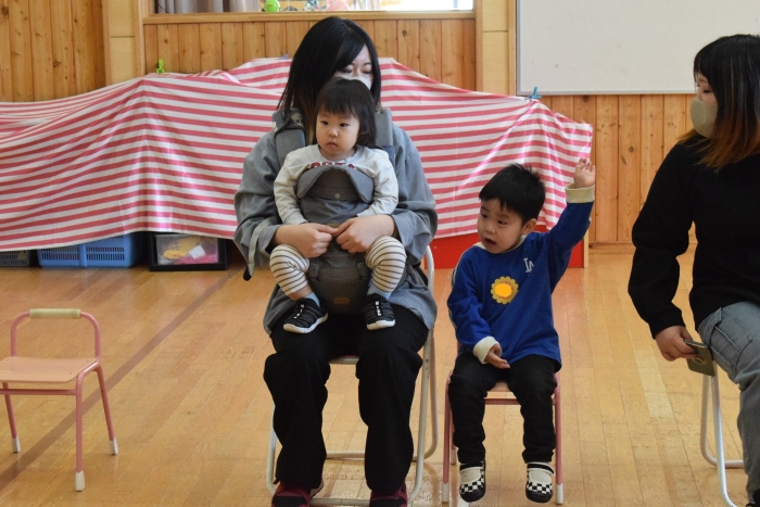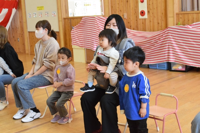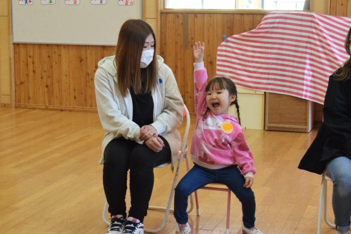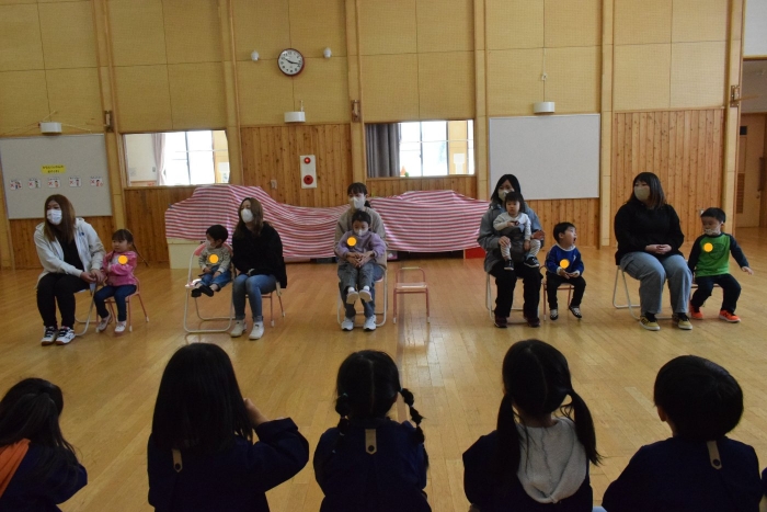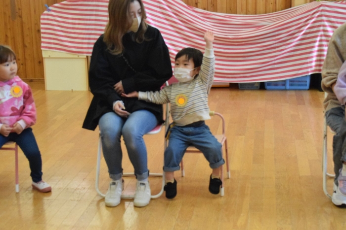 うめさん、ももさんはこの日のために歌や手遊び、自己紹介などの練習もしてきました、先輩らしい姿が見せられたでしょうか? 小さい子たちの自由な姿にも動じることなく、しっかりと自分たちの役割を果たしている姿は立派でした(^^)/