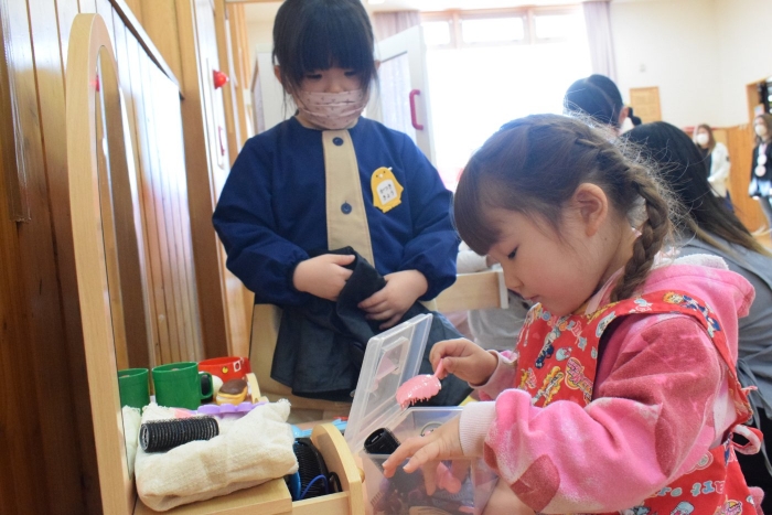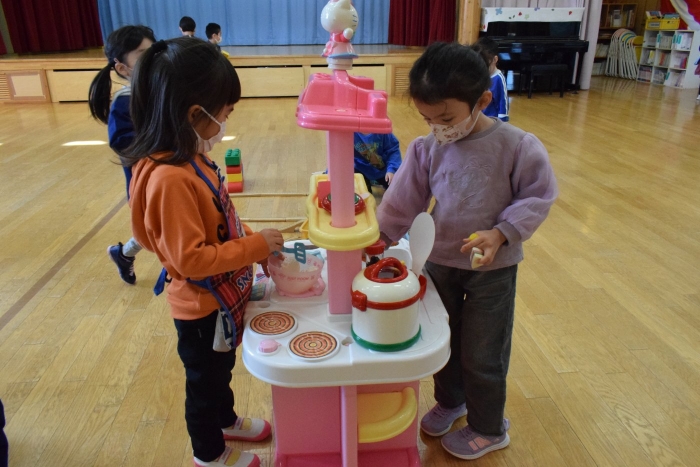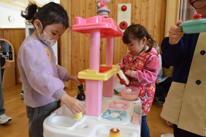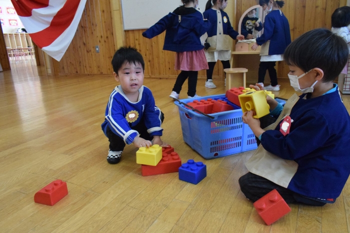 式が終わったらお待ちかねの遊ぶ時間(*^-^*) 園開放日で遊んだおもちゃで楽しい時間を過ごしました!