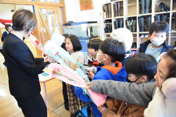 なんと1年生が園長を訪ねて来てくれました! 「お世話になりました!」と、こちらこそ「楽しかったです!お世話になりました(^^)/」。思ってもいなかったサプライズのプレゼントに本当にびっくりしました(^^)/ あらためて、その心遣いに感謝いたします。