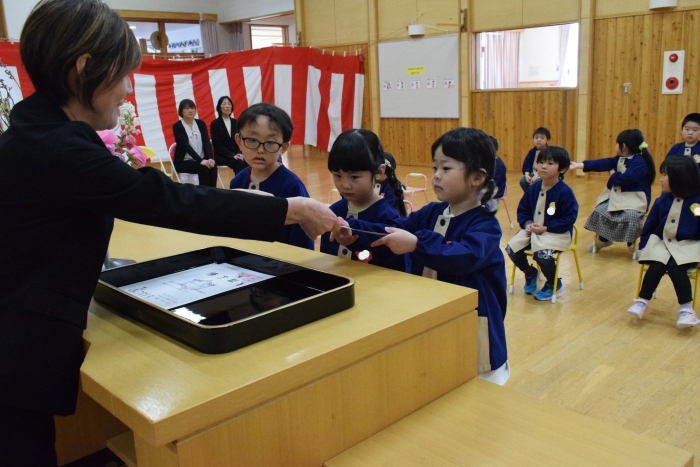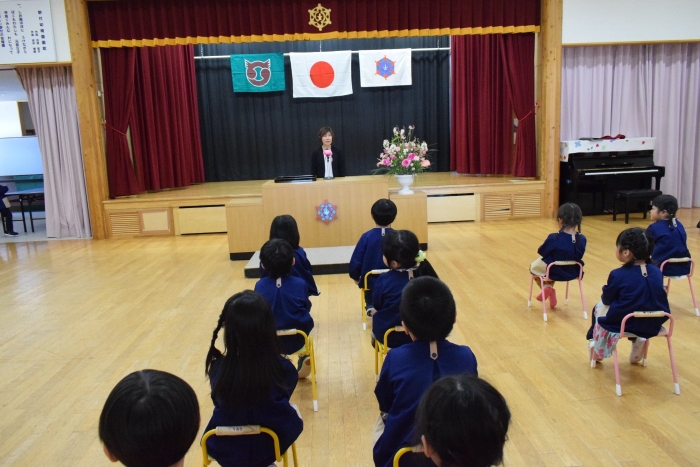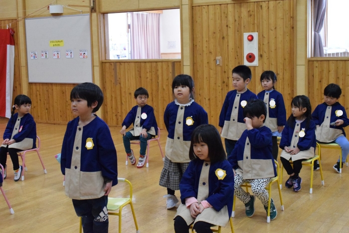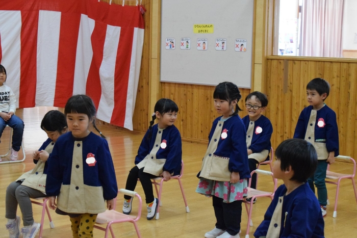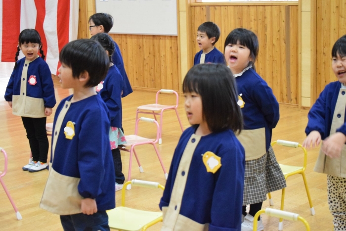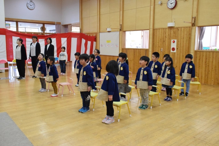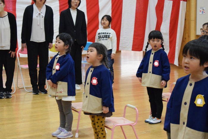 1度練習はしましたが本番はどうなるかある種の期待と不安をもって式に臨みました。園歌は今までで一番なぐらいしっかりした声で、3番まで間違えずに歌うことができていて素晴らしかったです。