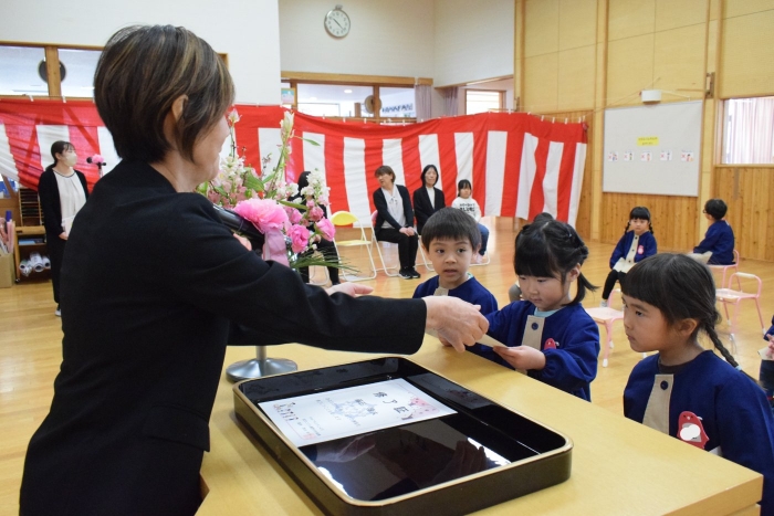 修了児のお名前を担任がおめでとうの気持ちを込めて呼びました。