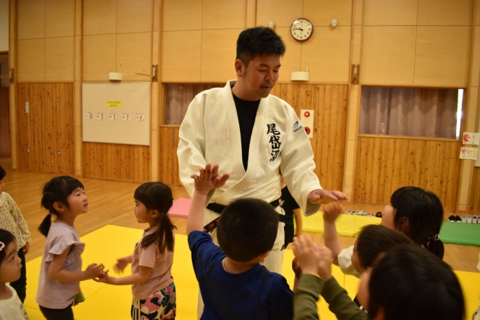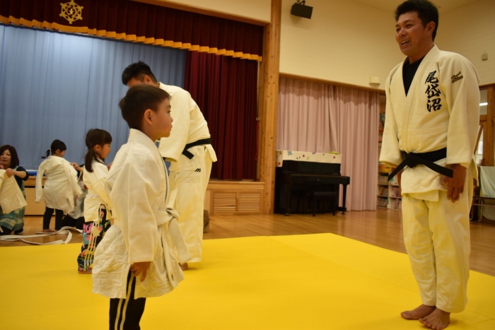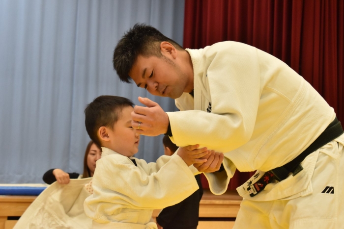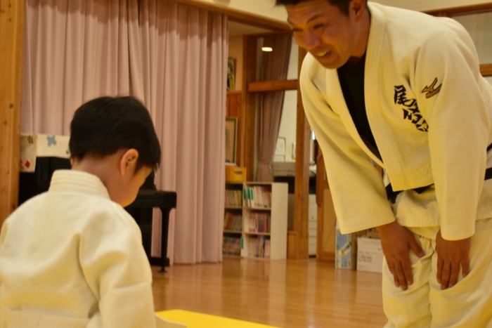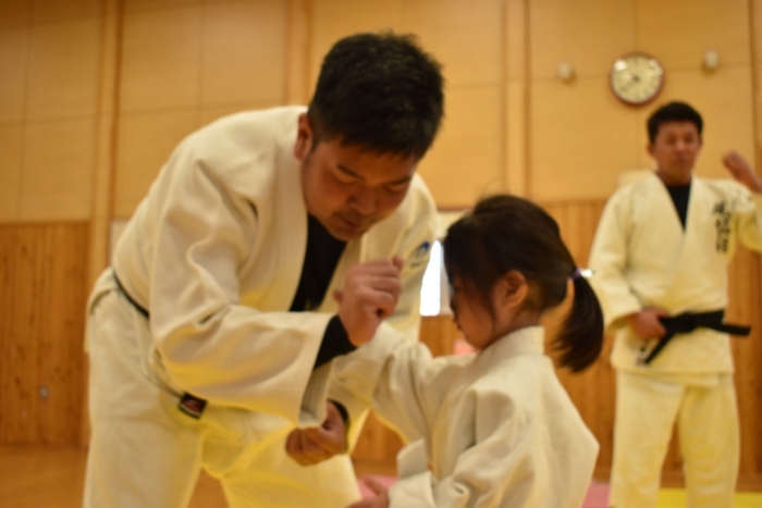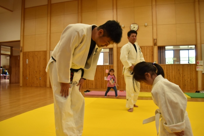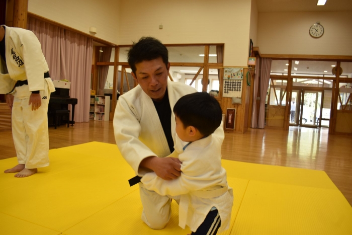 柔道での礼をする,挨拶をするといった礼儀作法,そして技を教えて