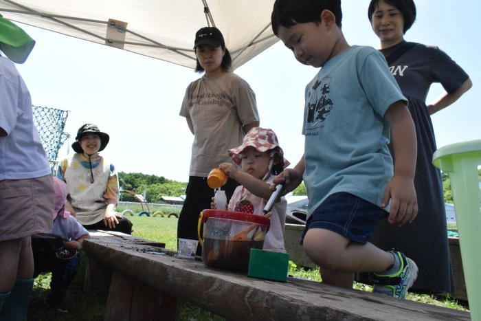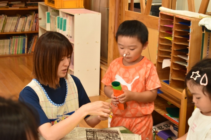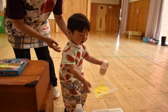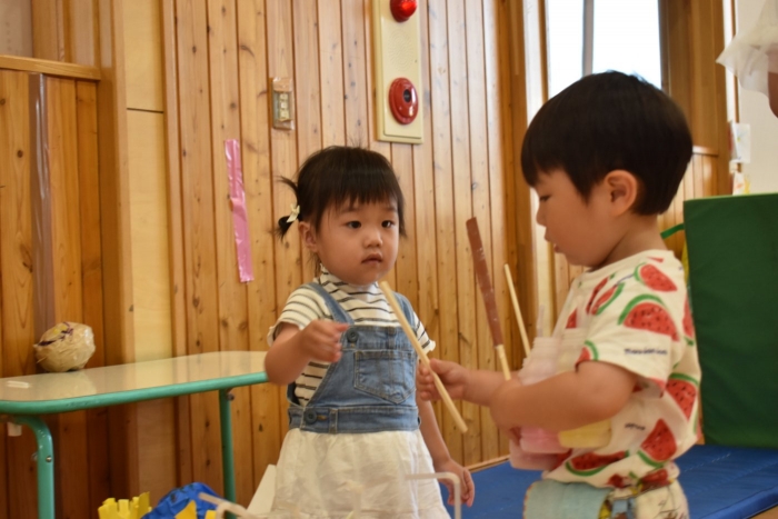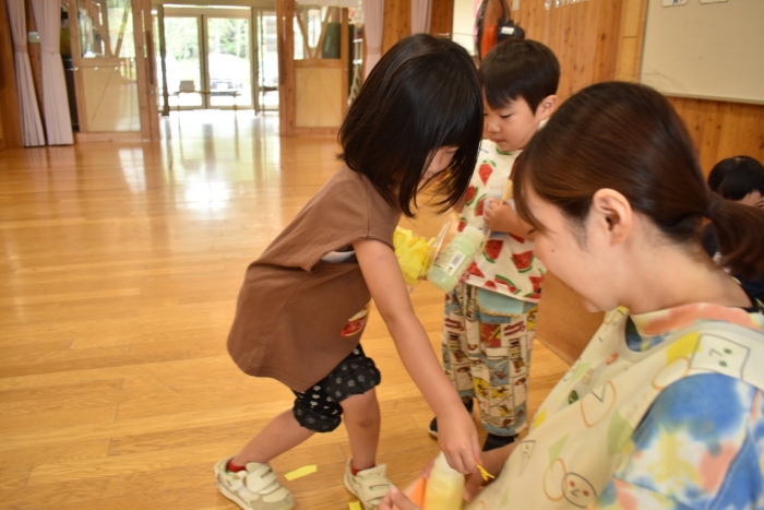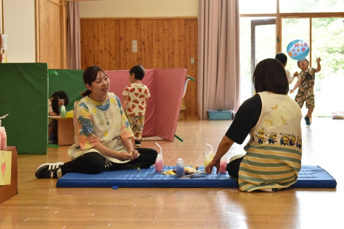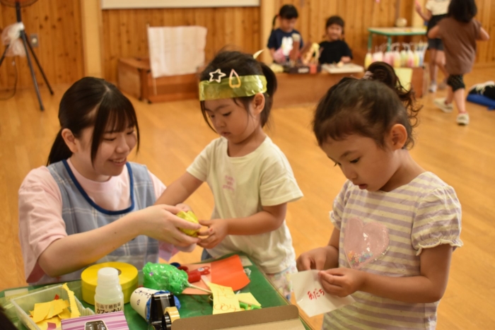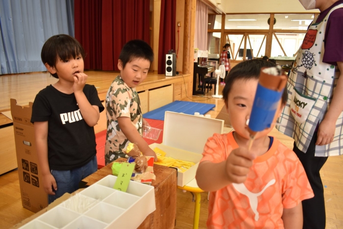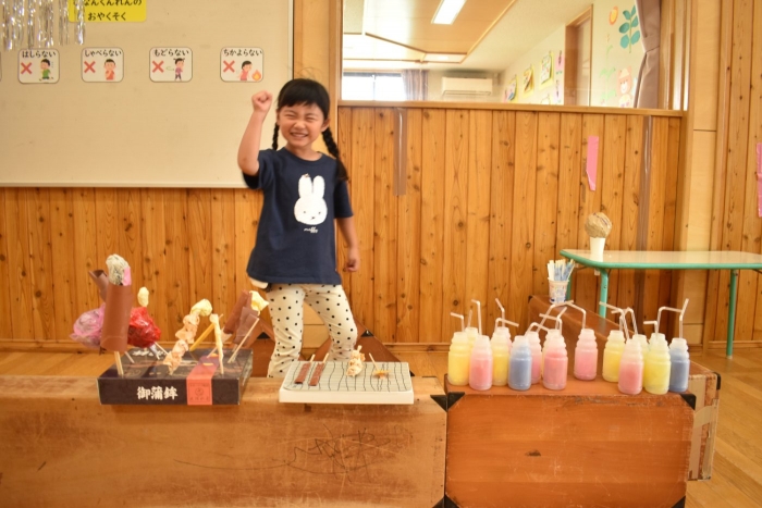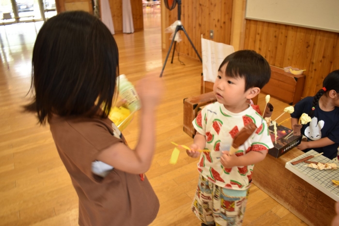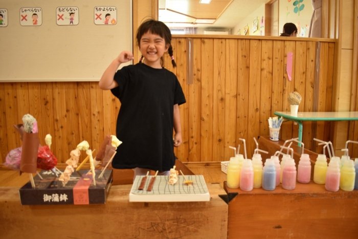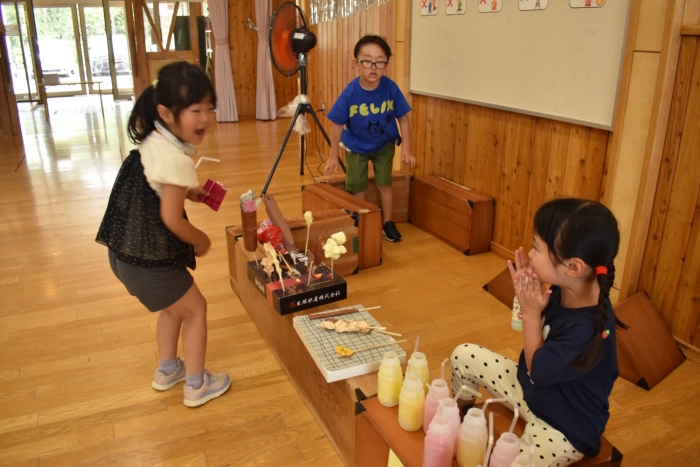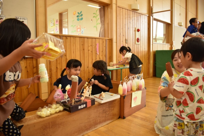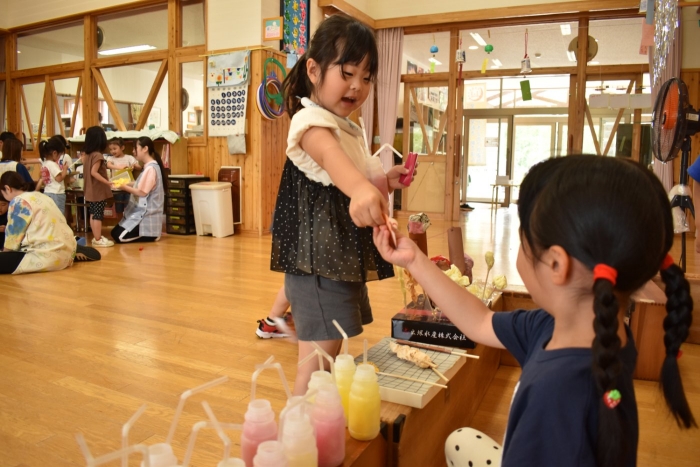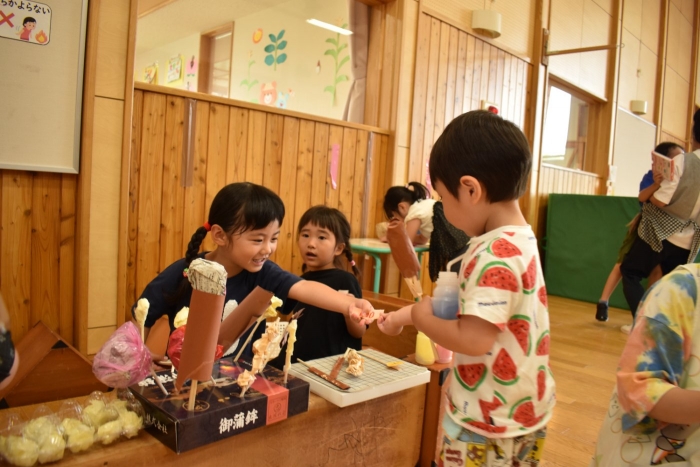 お祭りごっこ繁盛中 / 元気いっぱい!園開放日のお友達