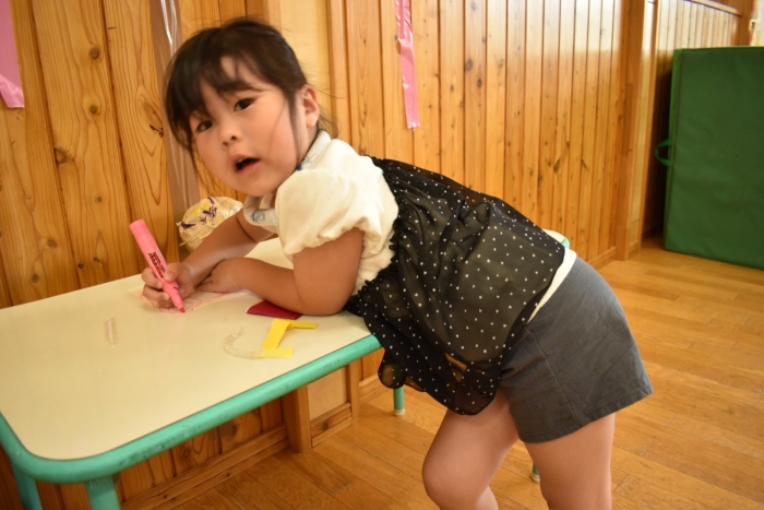 明日はもも組さんのプール体験の日です。もも組さんはプールの持ち物を持ってきてくださいね。また,プールに一緒に入水してくださるお母さま方,よろしくお願いいたします。