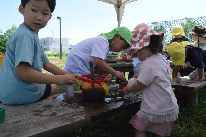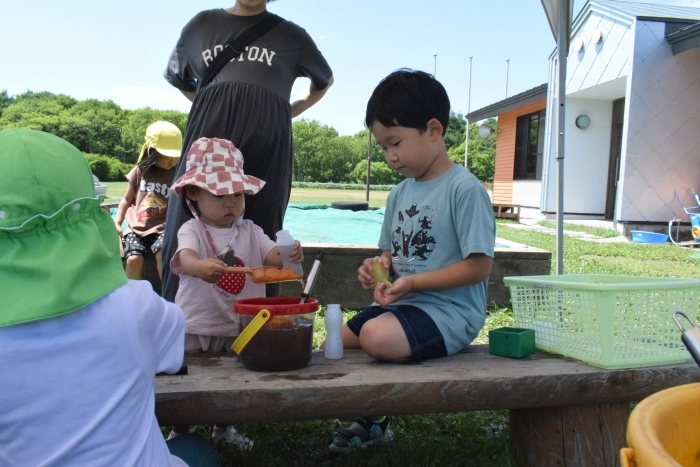 久し振りに涼しい戸外で園開放日のお友達も一緒にたくさん遊ぶことができました。