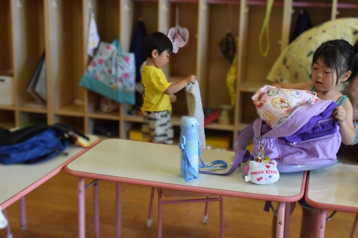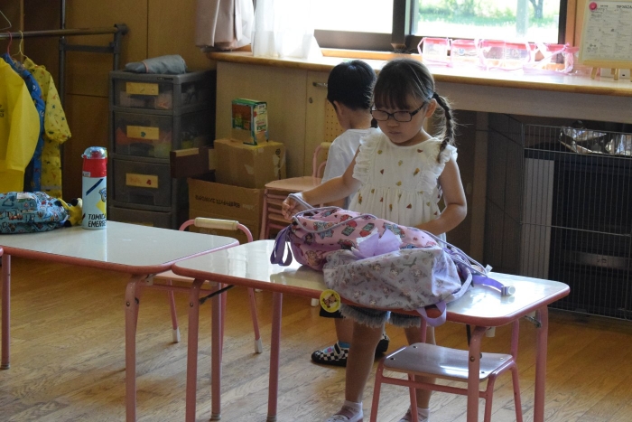 今日で1学期が終わります。みんなで遊んだプレイルームの環境を,今日はみんなでお片付け。お祭りのお店や、大型積み木の家などもいったんきれいにお片付けをしました。片づけをしながら,みんなで楽しく遊んだ思い出も振り返ることができたかな?幼稚園をきれいにして,明日からの夏休みを迎えられるようにしていきます。