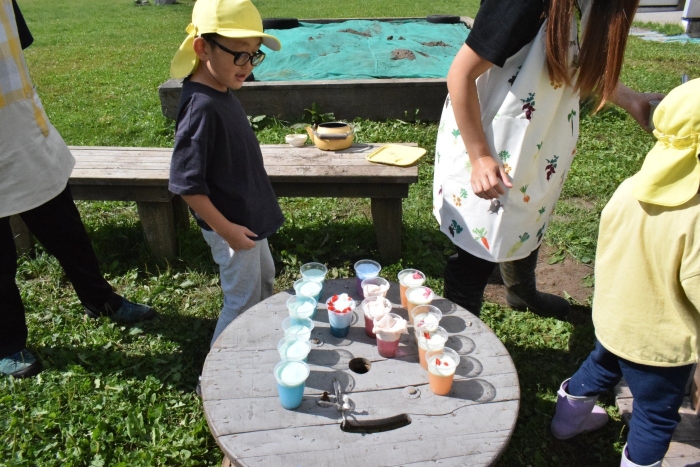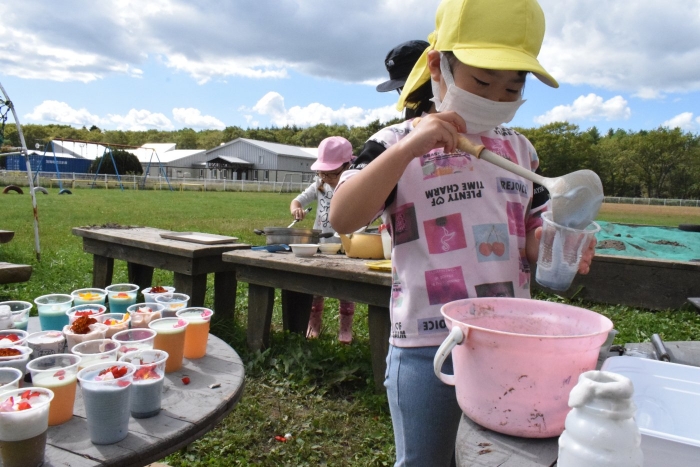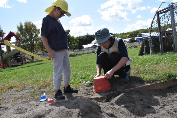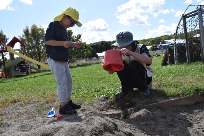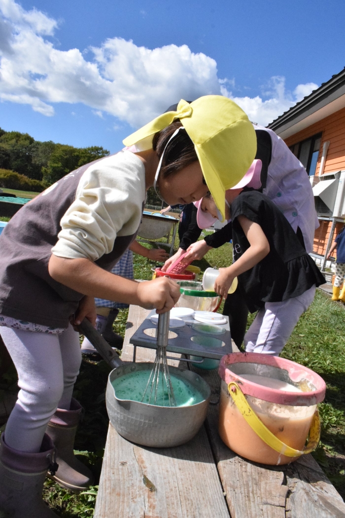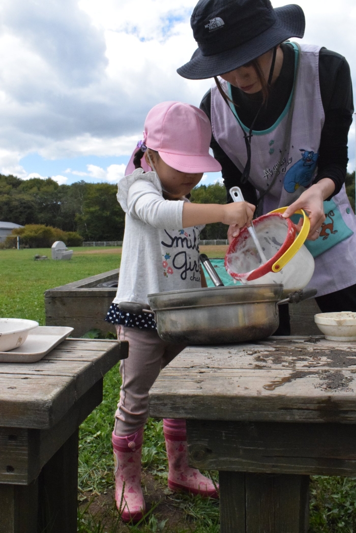 今日もとっても涼しい秋模様の空の下,じっくり楽しんでいたうめ組さんともも組さんでした。