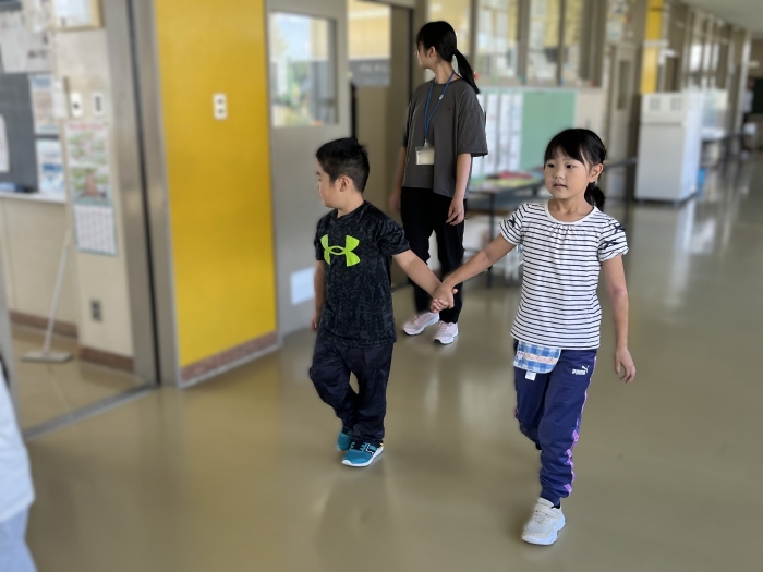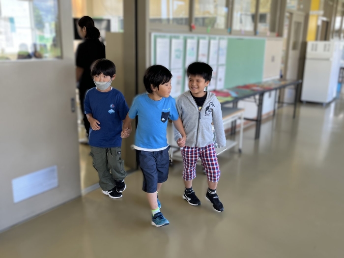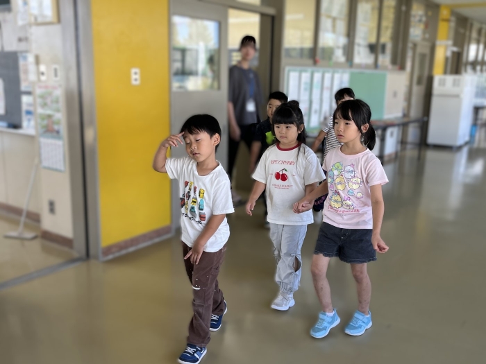 中休み交流後は,1年生にお礼を伝えました。小学校の授業の雰囲気を感じることもできました。そして1年生への憧れの気持ちも感じたことでしょう。体育館での交流も満喫させていただきました。さくら組さんの就学もあと,約半年後ですね。小学校への期待や楽しみな気持ちをもってくれているといいなと思います。