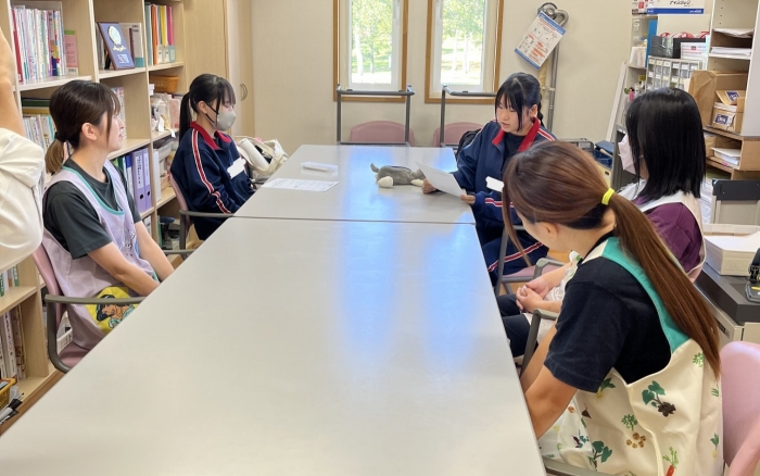 担任の先生方と,二日間を振り返り,疑問に思ったことや感じたことなどについて質問をしたり,感想をはなしてもらったりしました。先生方も,中学生からの質問に対し,改めて保育について深く考えさせられる部分もあったようです。保育,子どもたちへの援助は正解がありませんので,こうやって,考えを巡らせること,話し合うことがとっても重要なことだと思います。