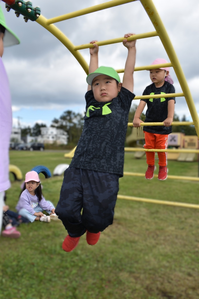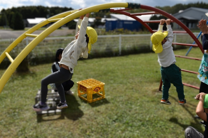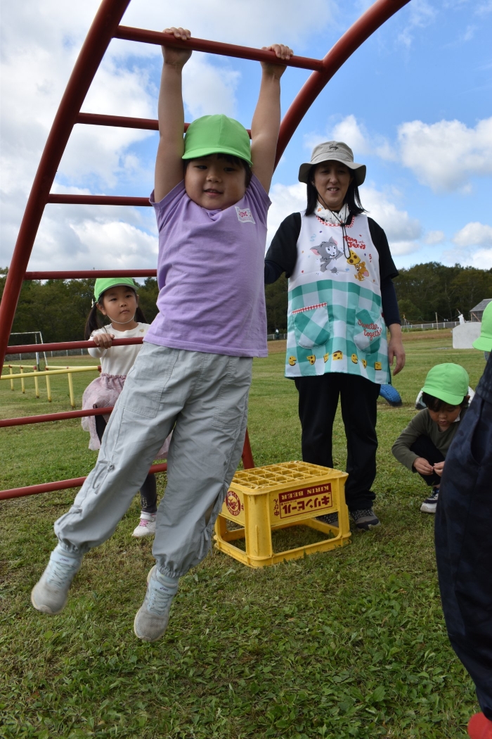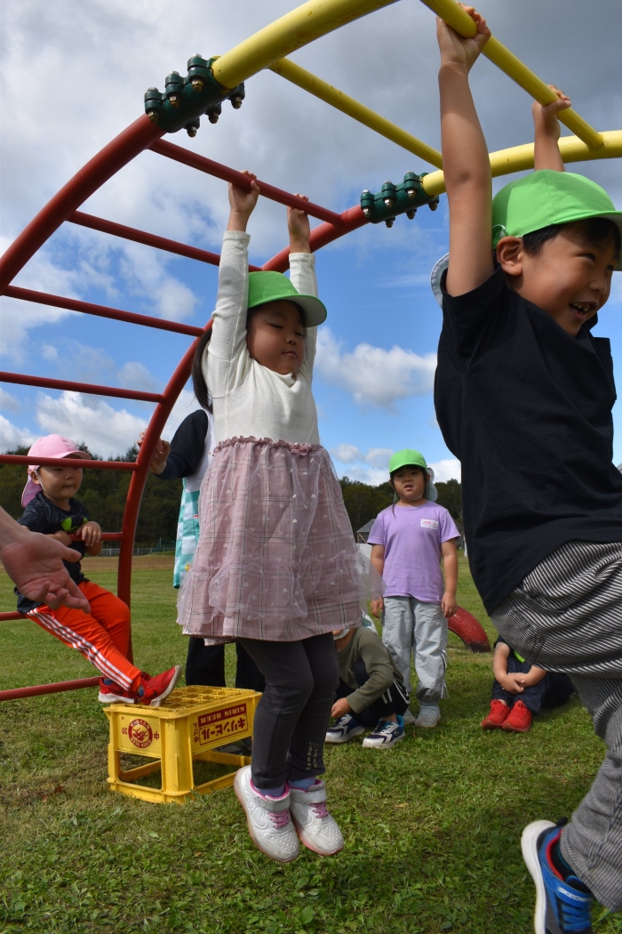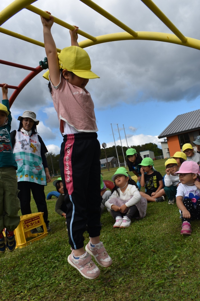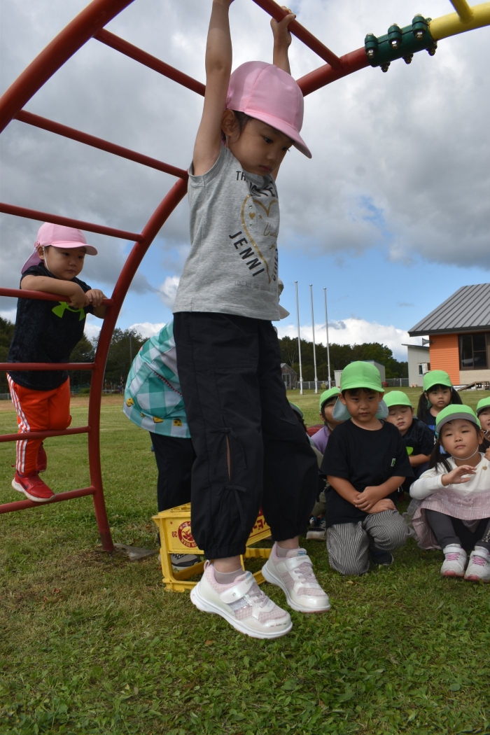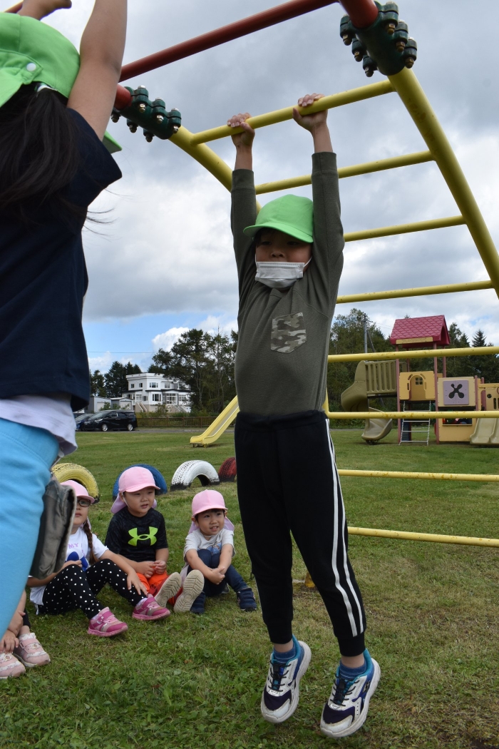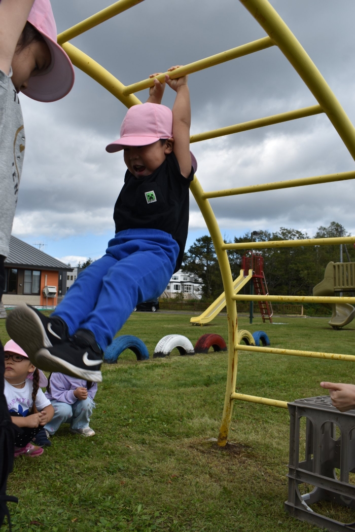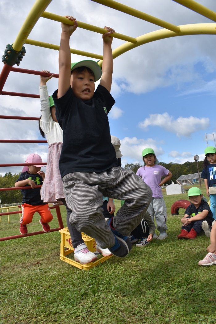 終わった後は,なんだか筋肉ついた感じ?がしたようです(*^-^*) 「ぶら下がり」「渡り棒」の他にも,登り棒での「よじ登り」の運動も,懸垂運動の中での重要な運動です。幼稚園には登り棒がありませんので,公園などで見かけたら挑戦してみてくださいね。