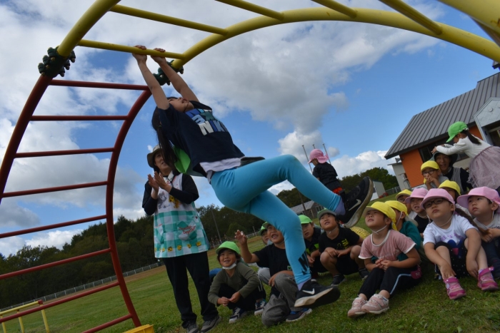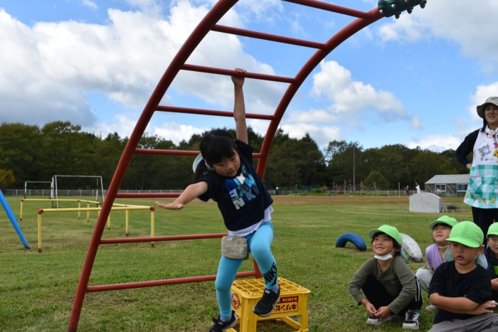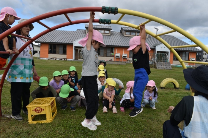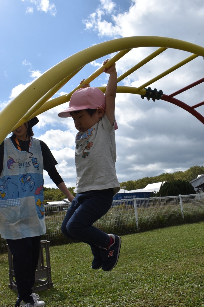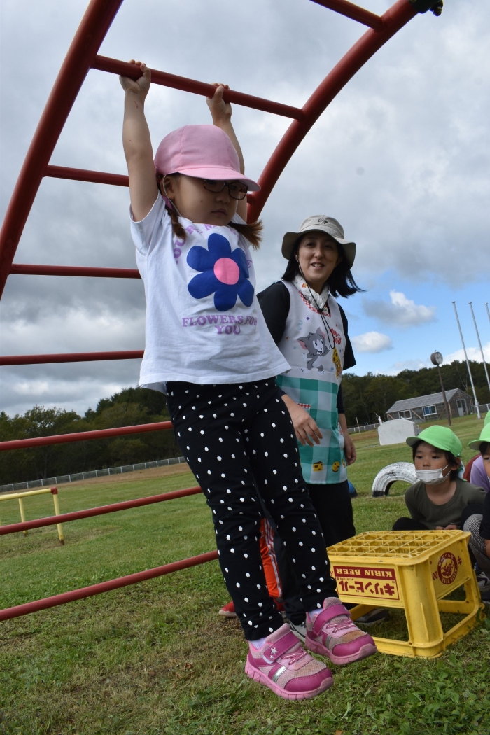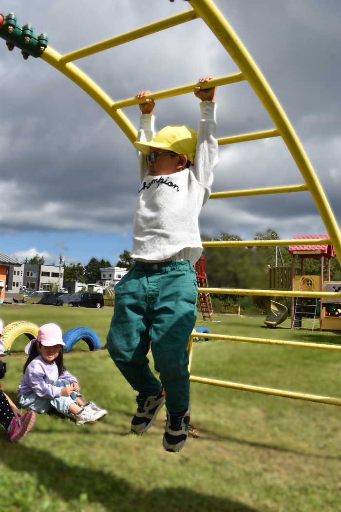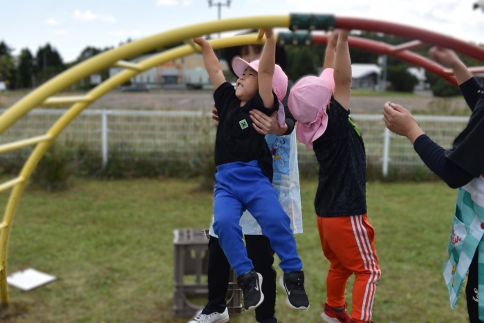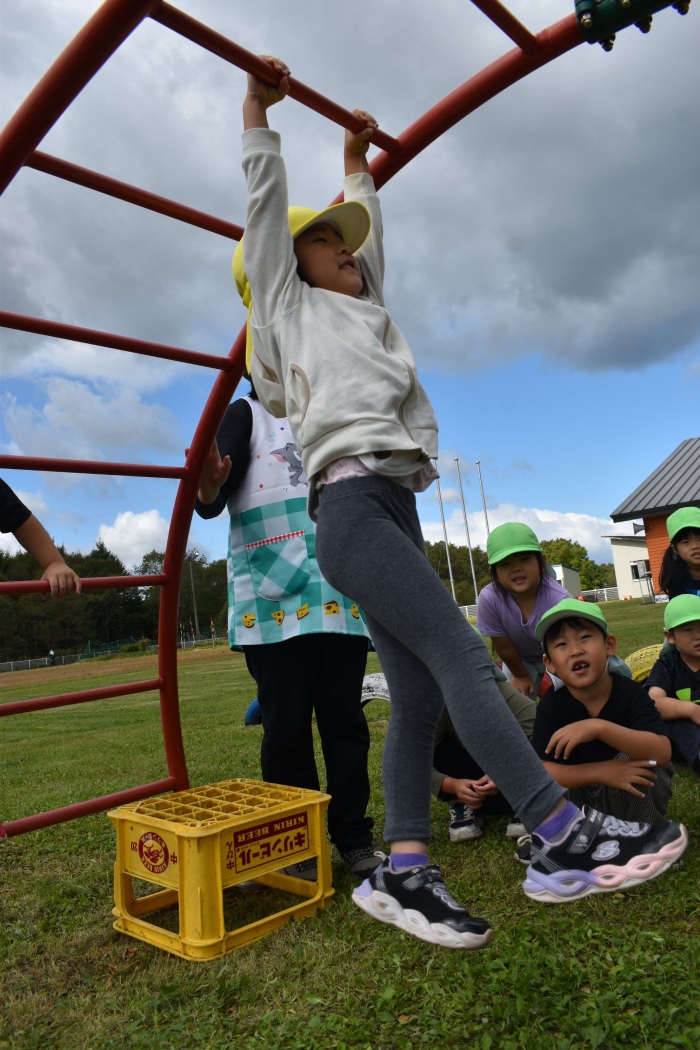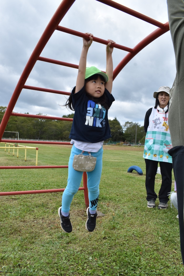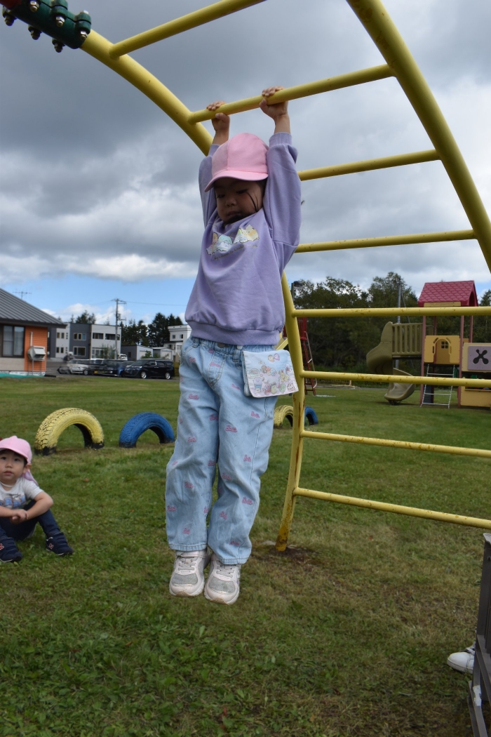 終わった後は,なんだか筋肉ついた感じ?がしたようです(*^-^*) 「ぶら下がり」「渡り棒」の他にも,登り棒での「よじ登り」の運動も,懸垂運動の中での重要な運動です。幼稚園には登り棒がありませんので,公園などで見かけたら挑戦してみてくださいね。