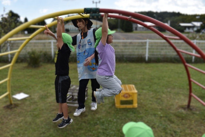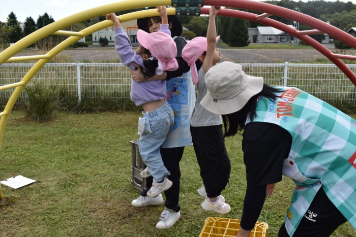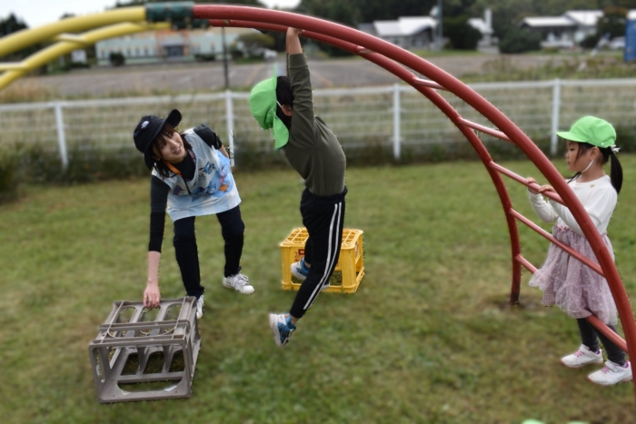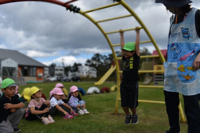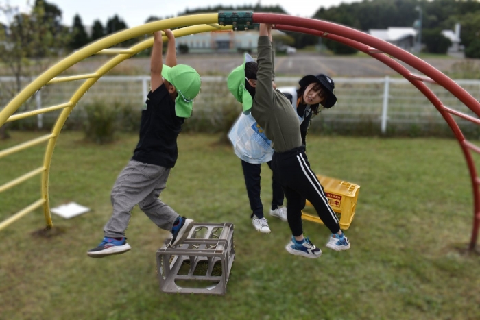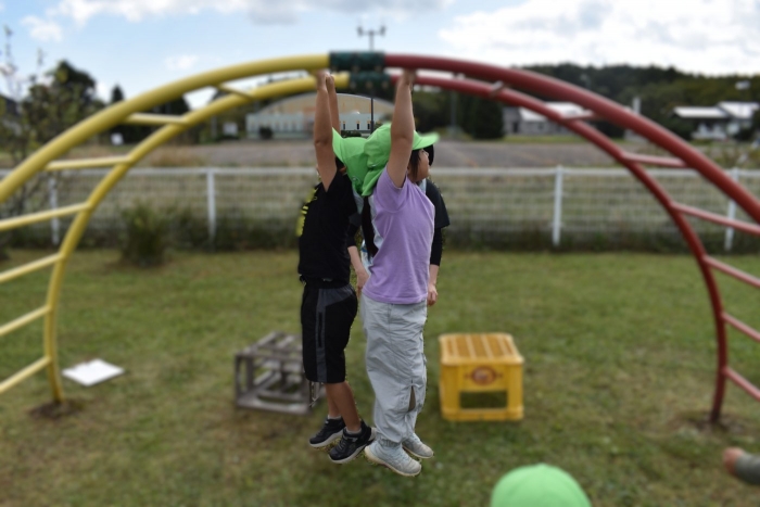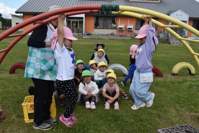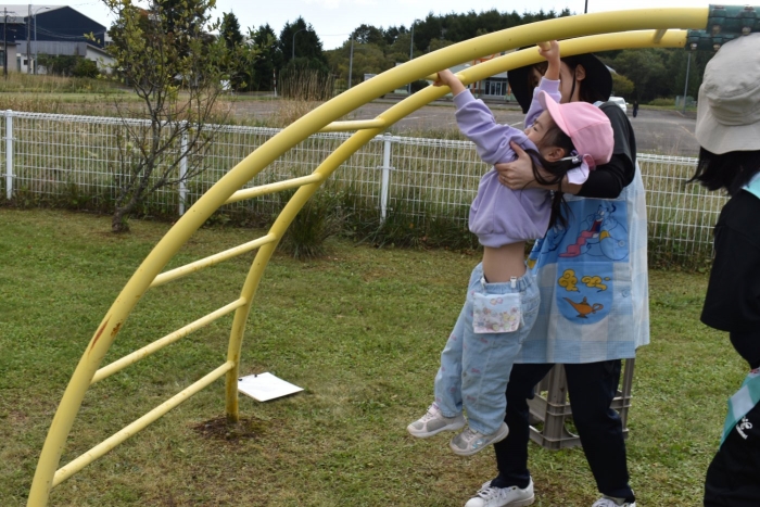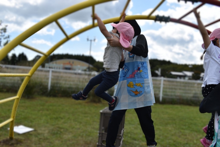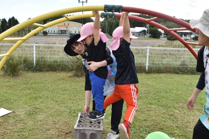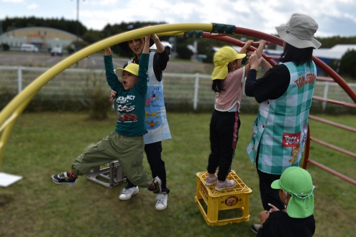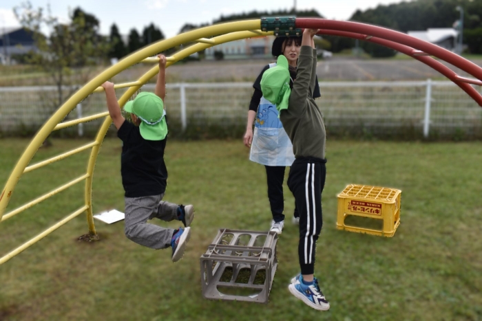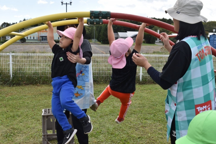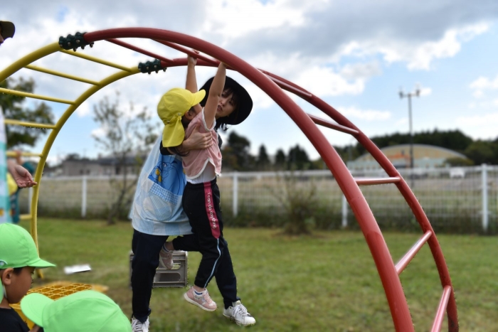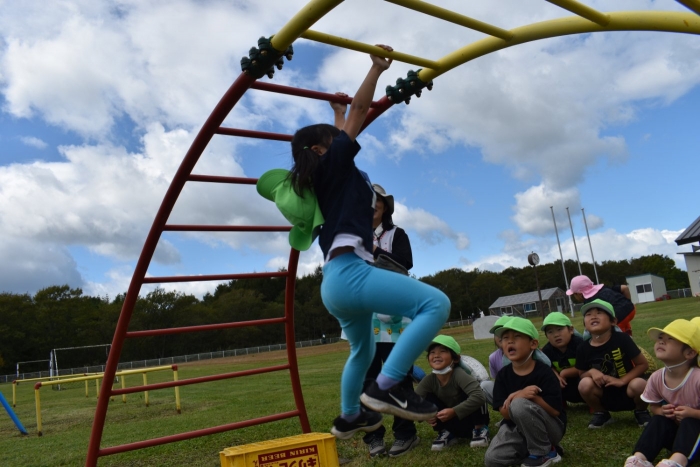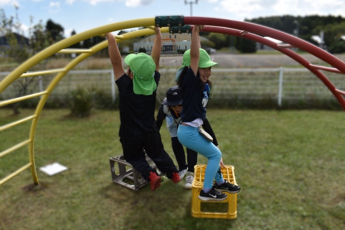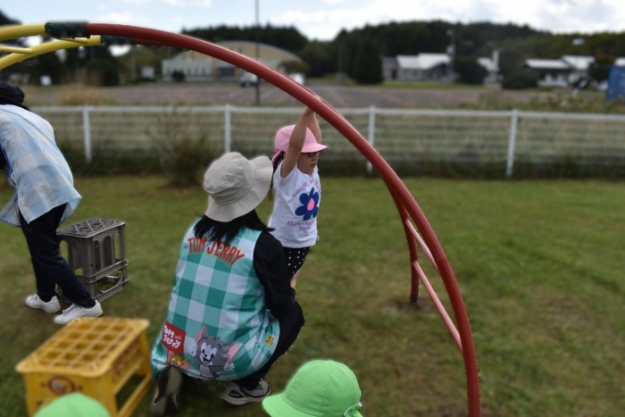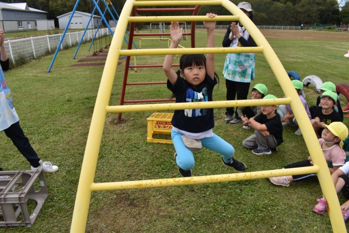 終わった後は,なんだか筋肉ついた感じ?がしたようです(*^-^*) 「ぶら下がり」「渡り棒」の他にも,登り棒での「よじ登り」の運動も,懸垂運動の中での重要な運動です。幼稚園には登り棒がありませんので,公園などで見かけたら挑戦してみてくださいね。