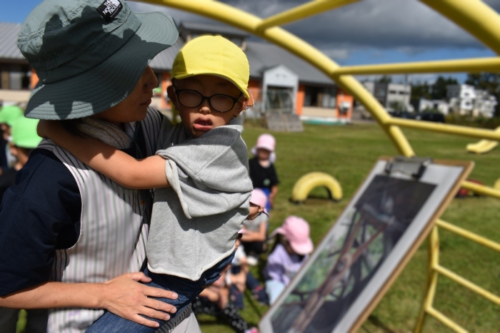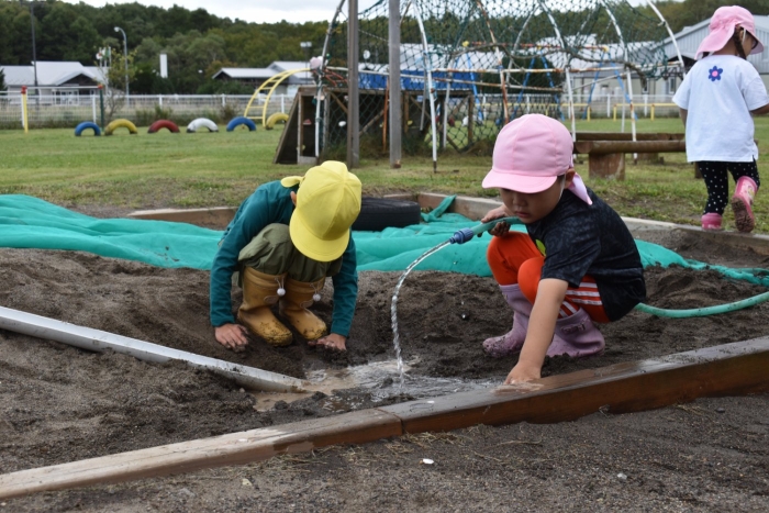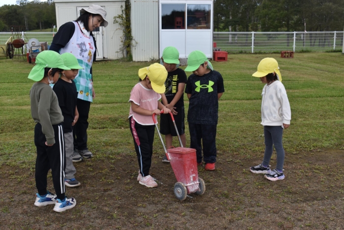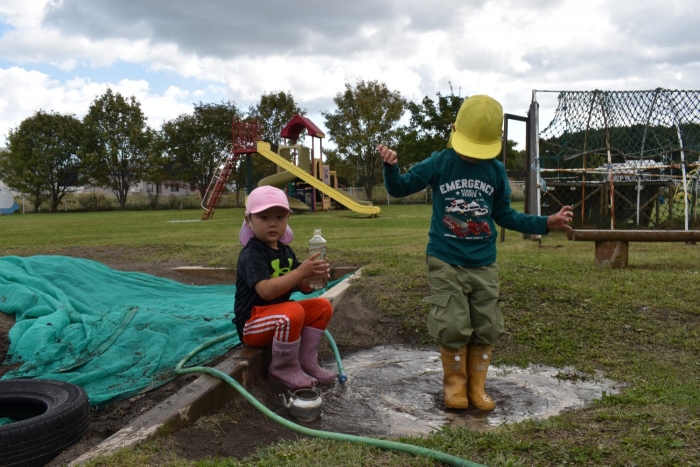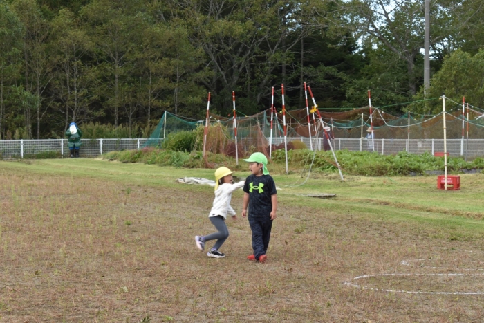 日曜日は警報が出されるほどの荒れたお天気となりましたが,皆様,被害はございませんでしたか?ちなみに,幼稚園の畑の鹿除けネットは外れてしまい,ポールが曲がってしまっていました。そのほか園庭に敷いていた,重いゴムマットまで飛ばされていたり,隣のパークゴルフ場の木が倒れていたりなど,かなりの強風だったみたいですね。畑の方は,これから収穫する予定の大根が植えられているため,鹿から守るために,再度,何とか取り付けました。大根を子どもたちと一緒に無事に収穫できるまで,鹿から守りたいと思います。