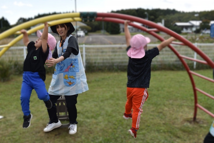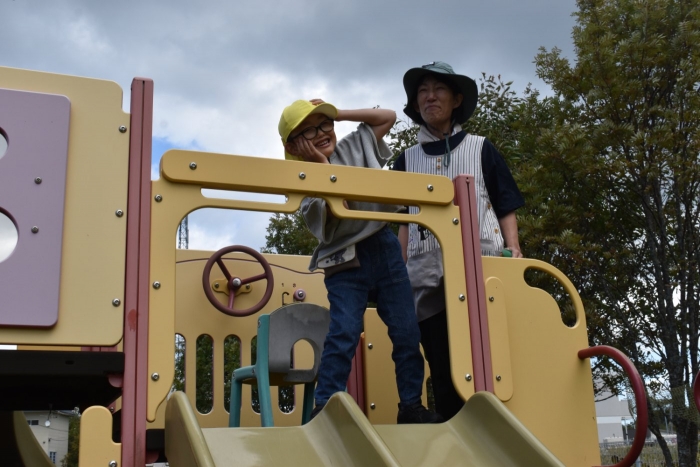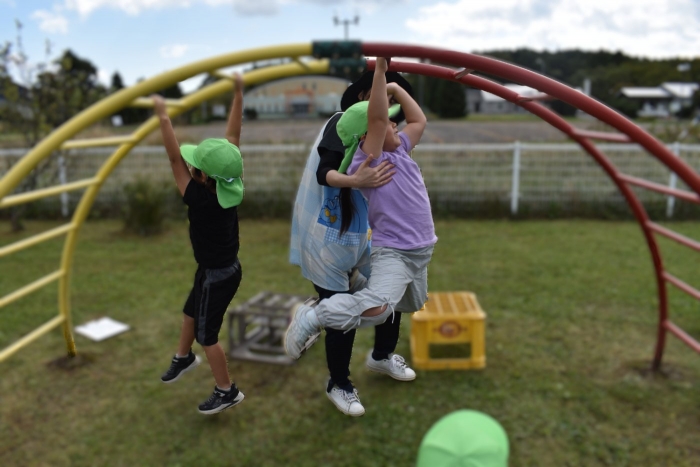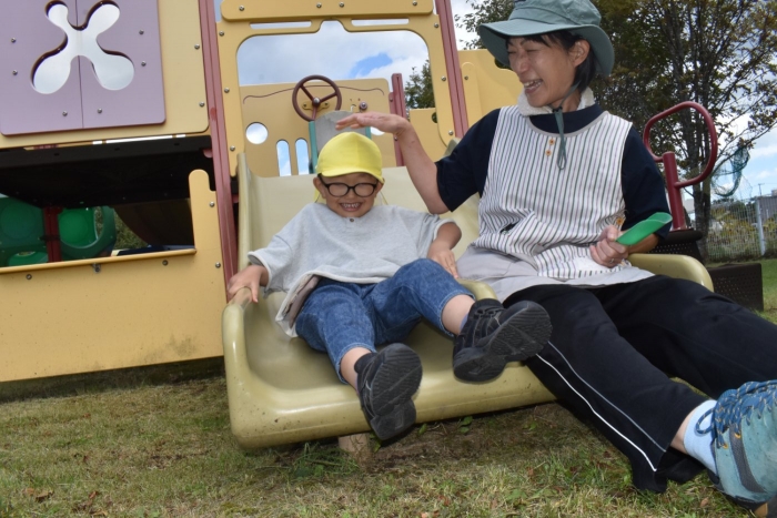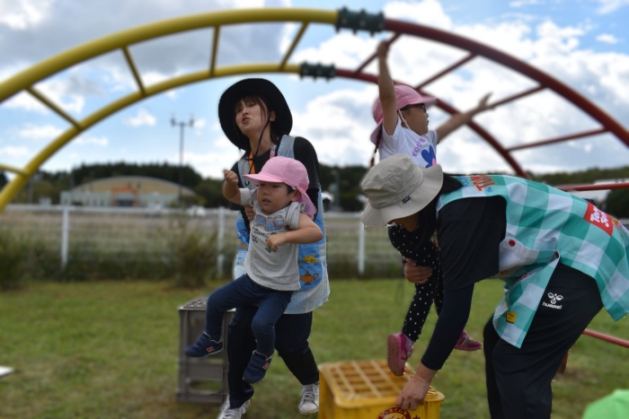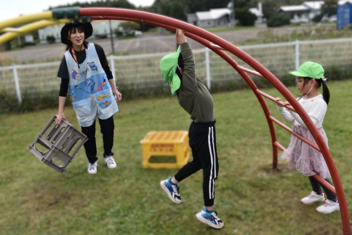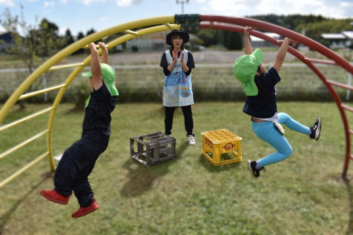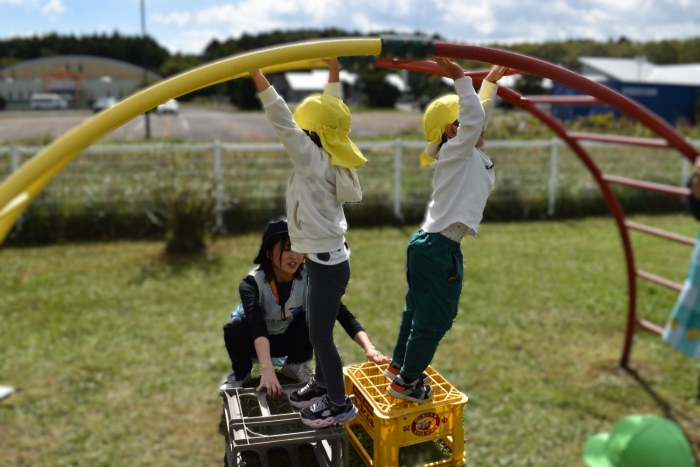 外で元気にわんぱくタイム / 秋空の下での戸外遊び