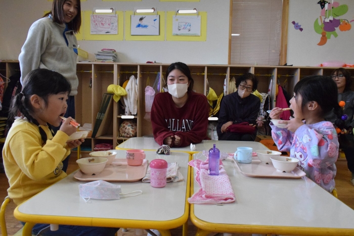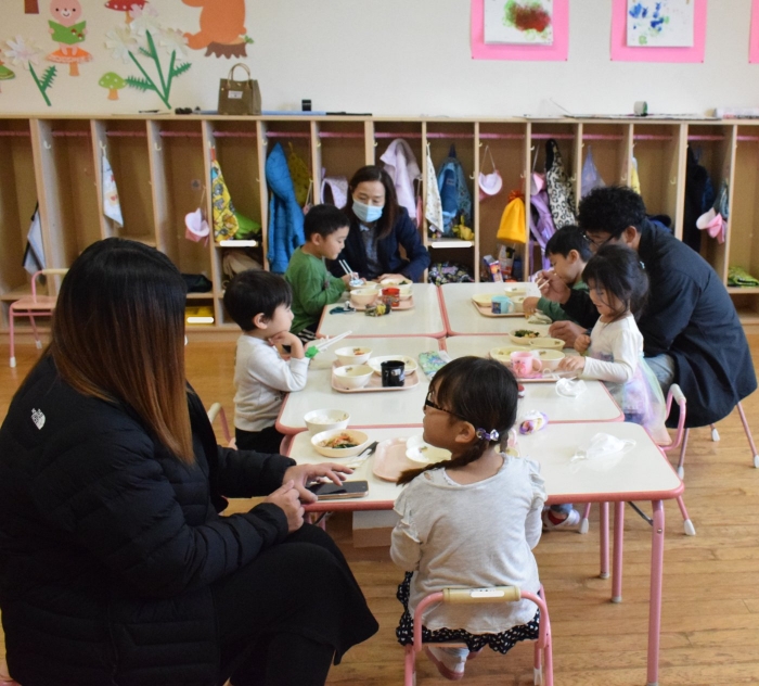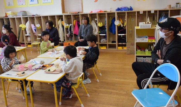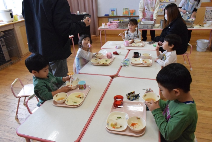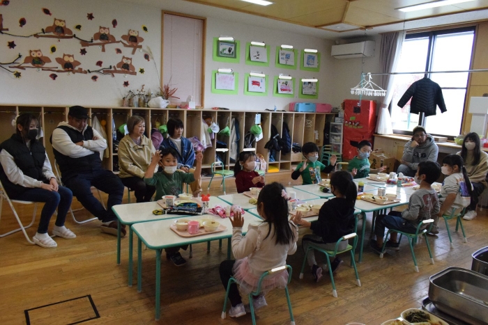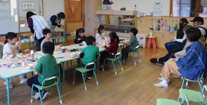 今日の給食の時間も,ご家族の方に参観していただきました。家の食事の時よりもいろいろなものを食べている様子に驚かれた方もいらっしゃったようです。