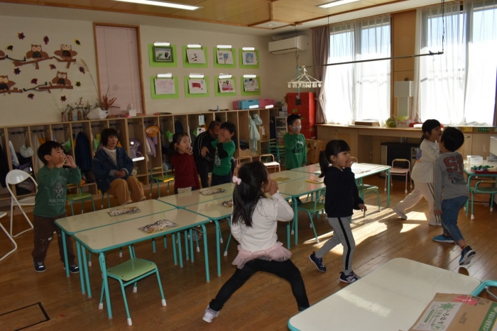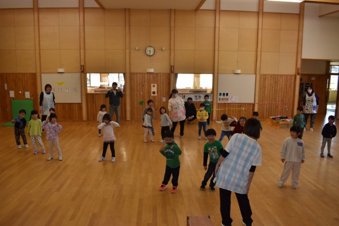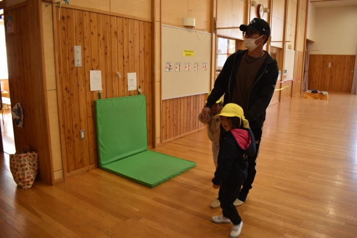今日は保育参観週間3日目の最終日。今日は18日名の方が来てくださいました。ご家族の方が来てくださり,抱きついて喜ぶ子もいましたよ。今日はコオーディネーショントレーニング『C』の日。おじいちゃんも一緒にやってくれていました(^^) 今日は『くの字-Sの字の変換B』と『ラディアン変換A』を行いました。音が変わると,動きも切り替え無ければならないため,音の変化を真剣に聞き取るため,集中する姿が見られました。