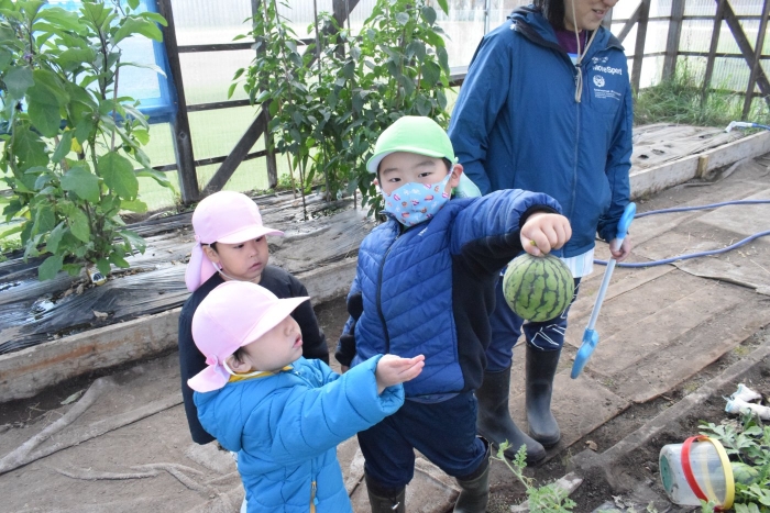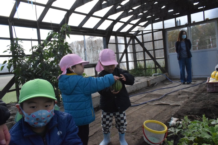 野付中2年生職業体験 / 戸外遊び&人参とメロン大収穫