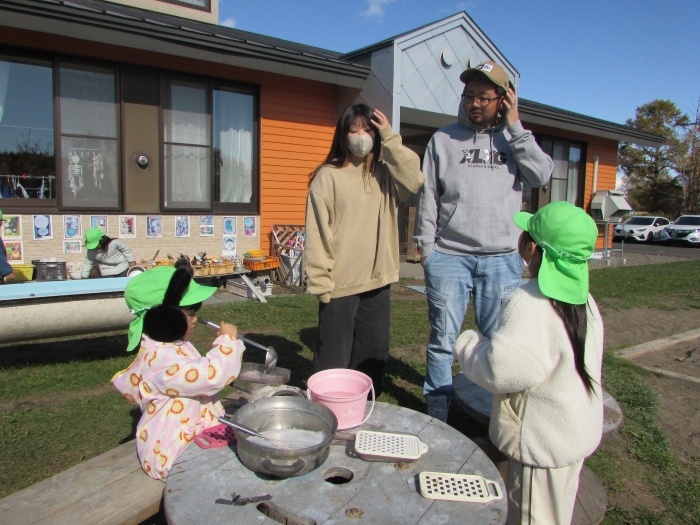 バス切符販売中/戸外で集団遊び&お料理 / ねぎぼうず読み聞かせ