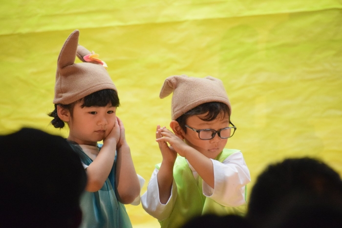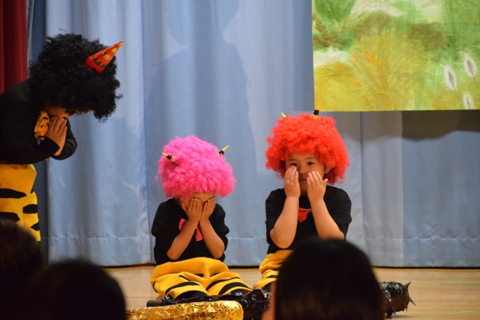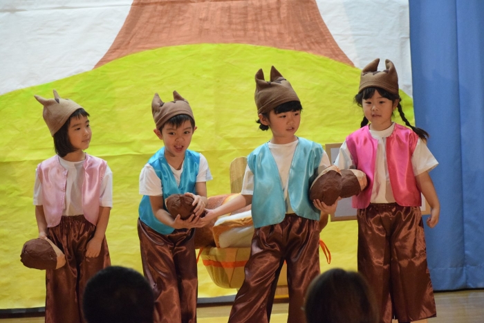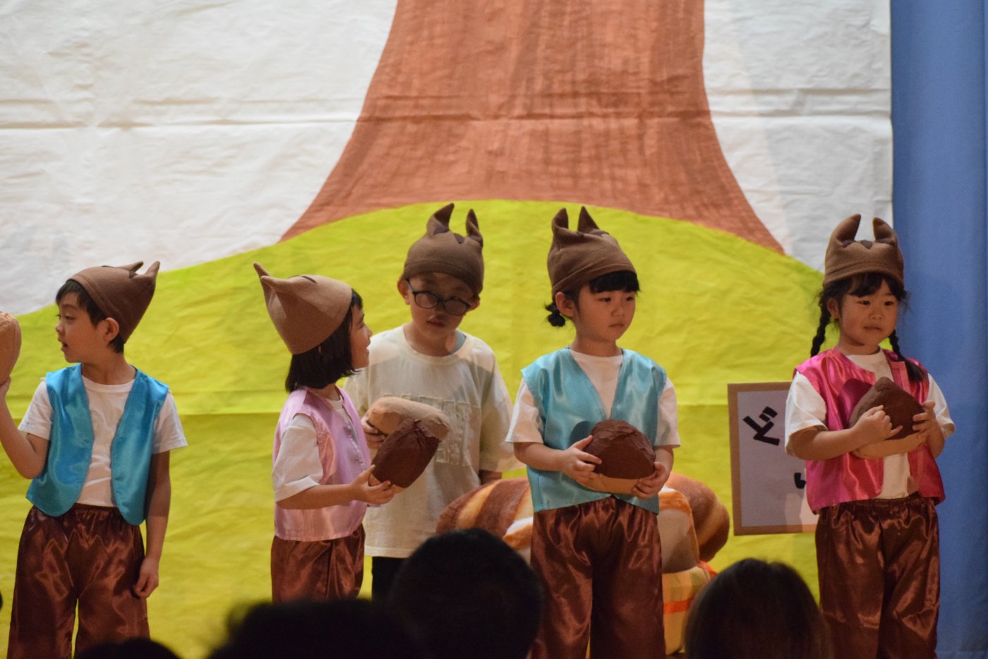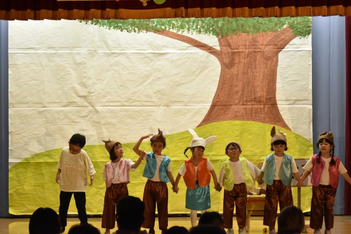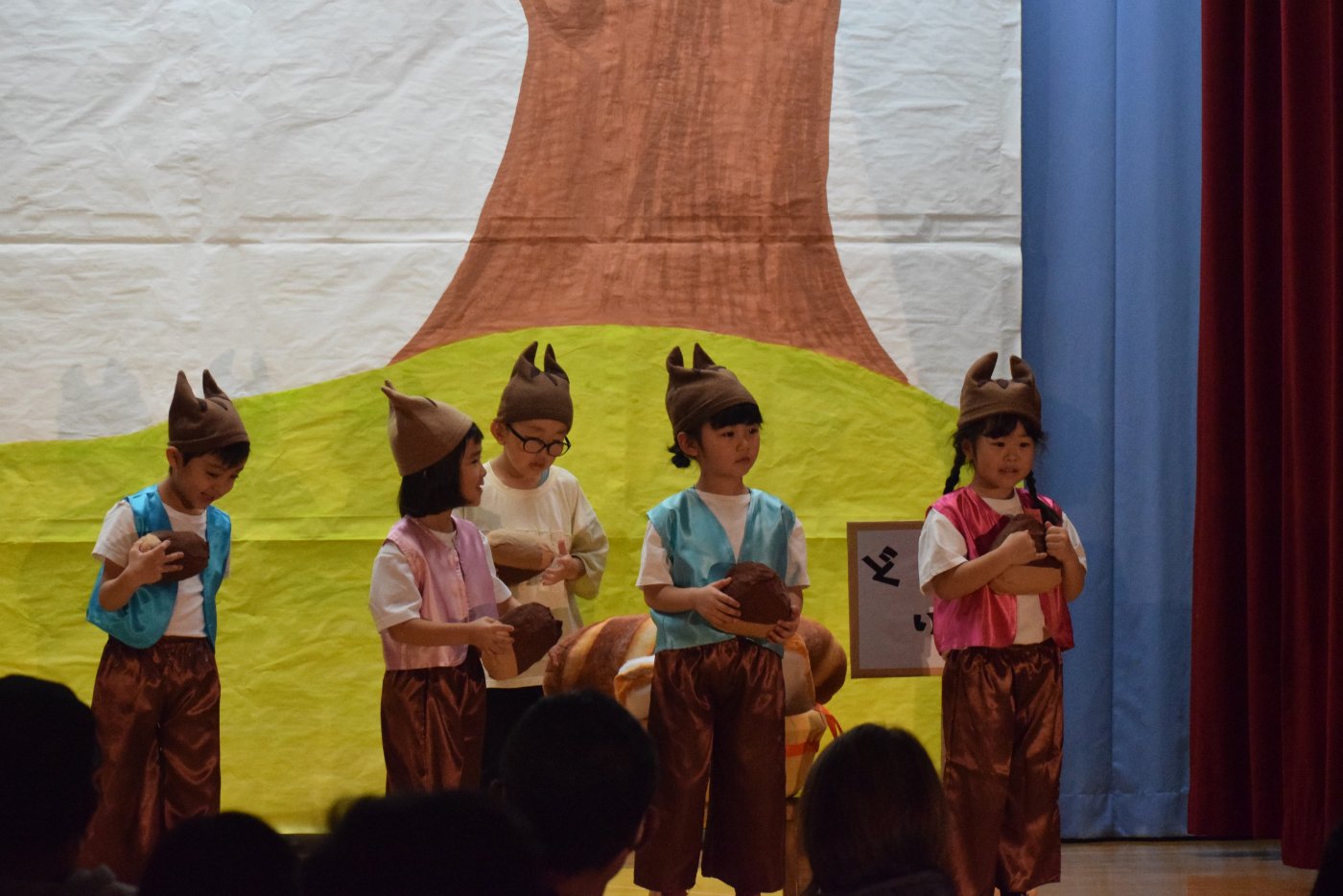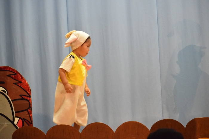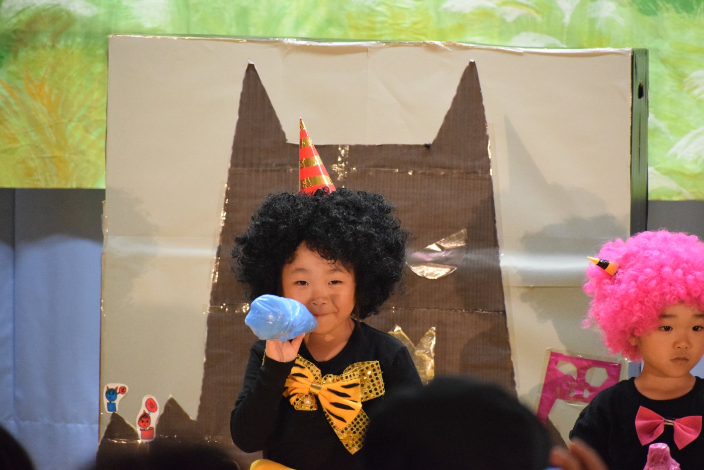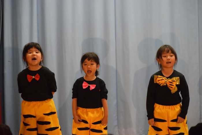 総練習に引き続き,係のお母様方には裏方のお仕事の方をしてただきました。どうもありがとうございました。今日の本番,総練習の時とはまた違って,ご家族の姿を見つけて照れてしまったり,緊張でちょっと固まってしまったりなど,違った姿も一瞬見られましたが,それもまたかわいらしかったですね。逆に今日,一番の頑張りを見せたお友達いもいました。これまでの練習の成果なのかなと思います。子どもたちみんな,大勢のお客様の前で頑張ることができて,本当によかったです。終わった後は,やり遂げた満足感であふれる表情の子どもたちでした(*^-^*)今日の頑張りと,これまでの練習で頑張ってきた過程を,ぜひ,ご家庭でもたくさん褒めて,認めていただければと思います。