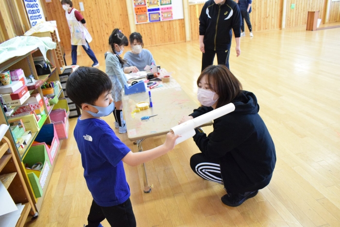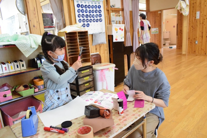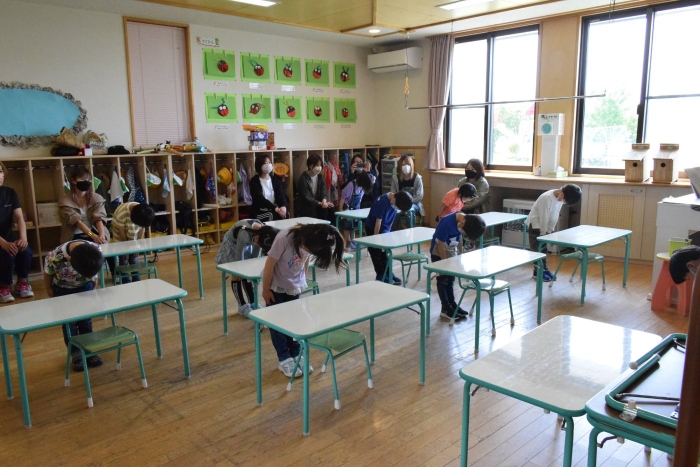 昨年度は秋に一回参観日がありましたがそれから半年ぶりに幼稚園での子どもの様子をお見せすることができました。半年間での成長を感じてもらえましたでしょうか。子どもたちはお母さんとじっくり触れ合うことができてとってもいい顔を見せていましたよ。お疲れさまでした!