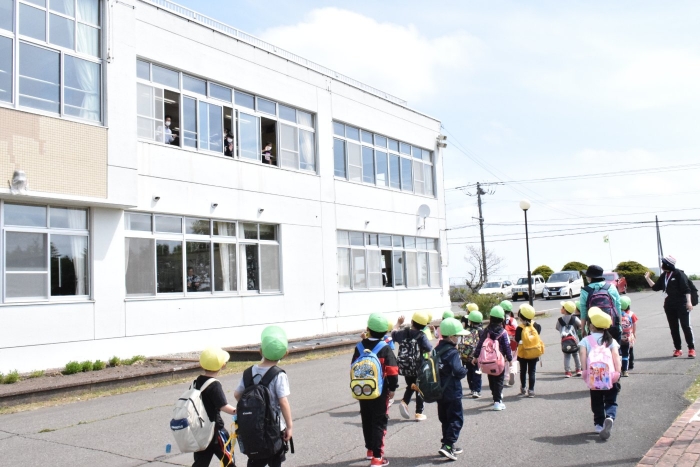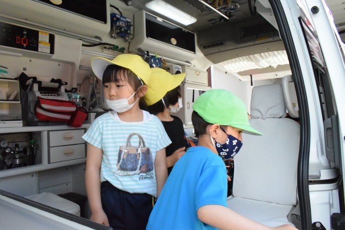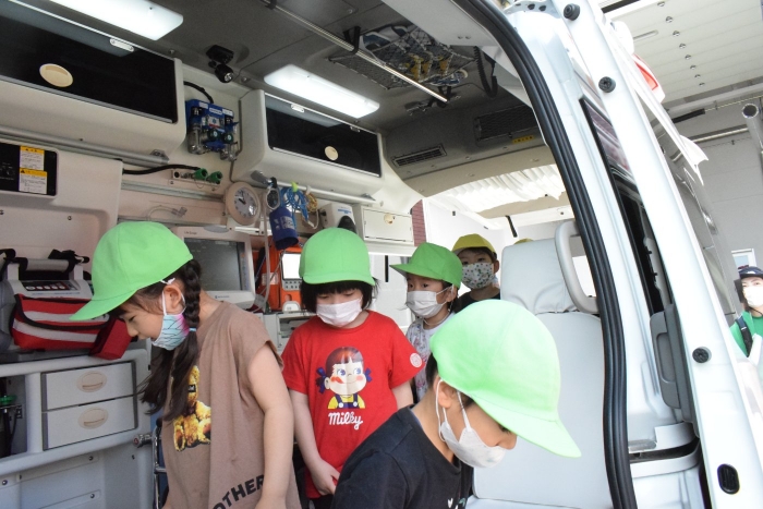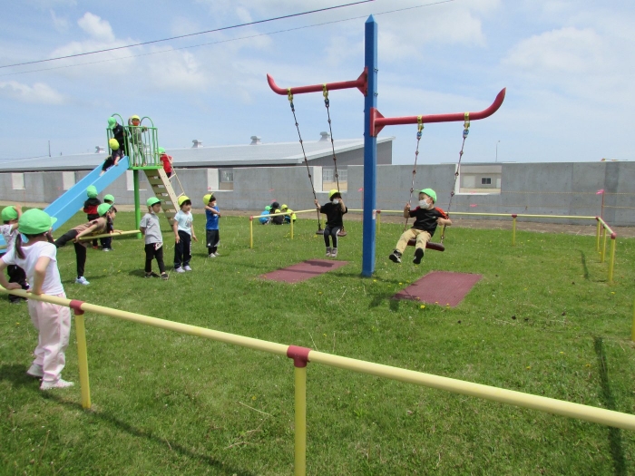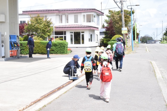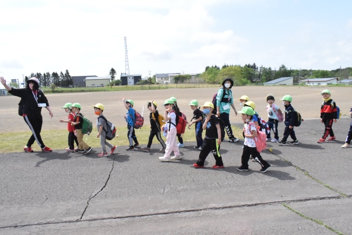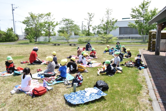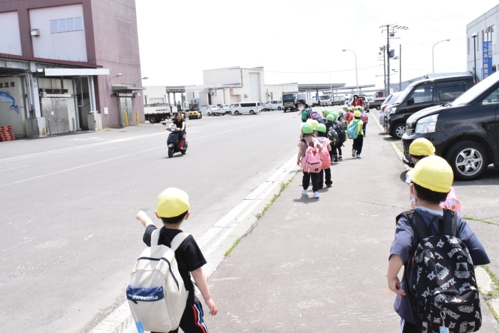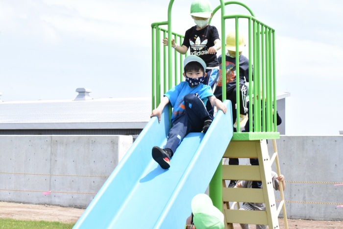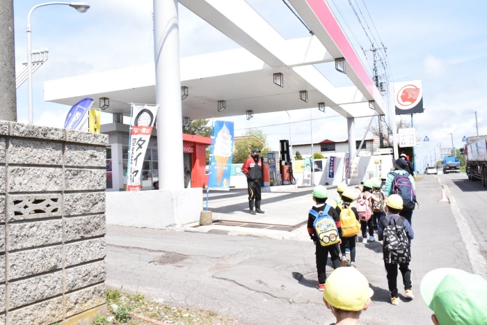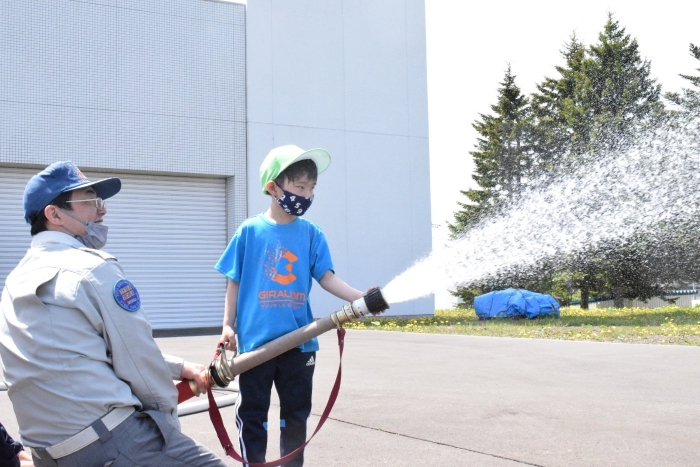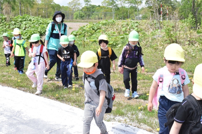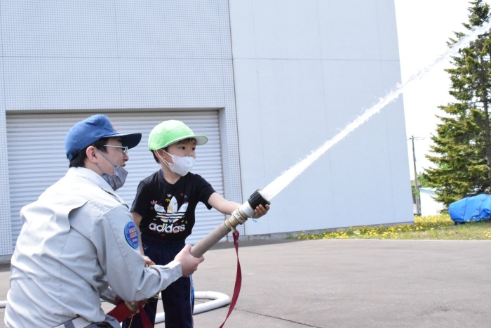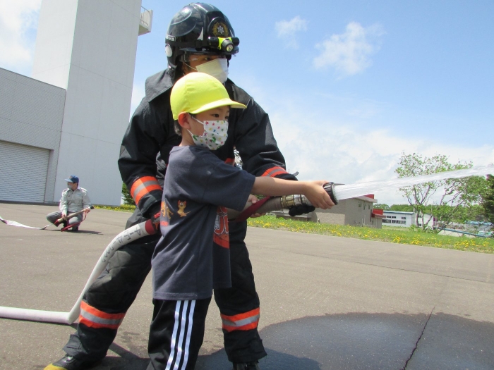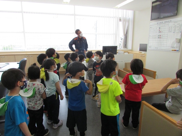 春も終わりごろではありますが、ももさんとさくらさんは徒歩遠足に出かけました。お天気にも恵まれ、消防署見学をしてからみなと公園へのルートでは、地域の方々に声を掛けていただいて親しみをもってお話しする姿がありました。消防署では署内を見させていただいたり、放水体験もさせていただく事ができました。