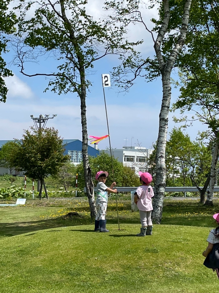 一緒に遠足に行きたかったうめさん。せっかくのお弁当日だったのでたっくさん体を動かしてお腹を空かそう!とパークゴルフ場にレッツゴー!お昼は風の弱いところを探してピクニック気分でおいしいお弁当をいただきました。