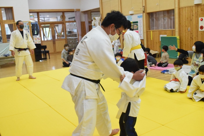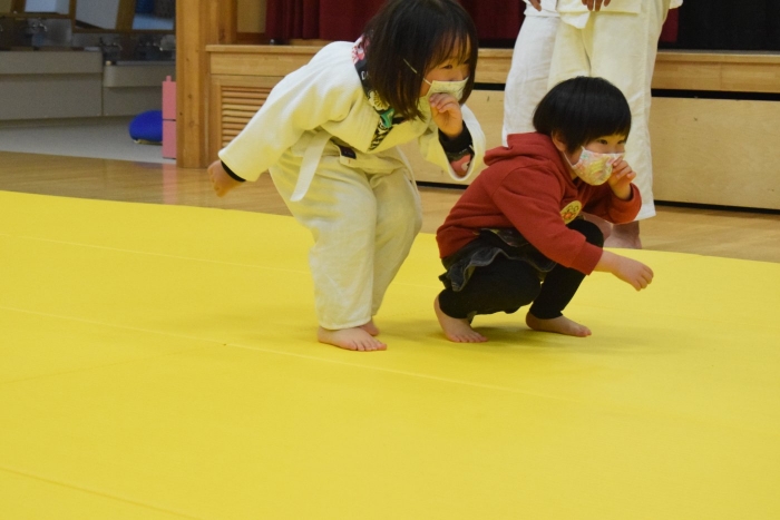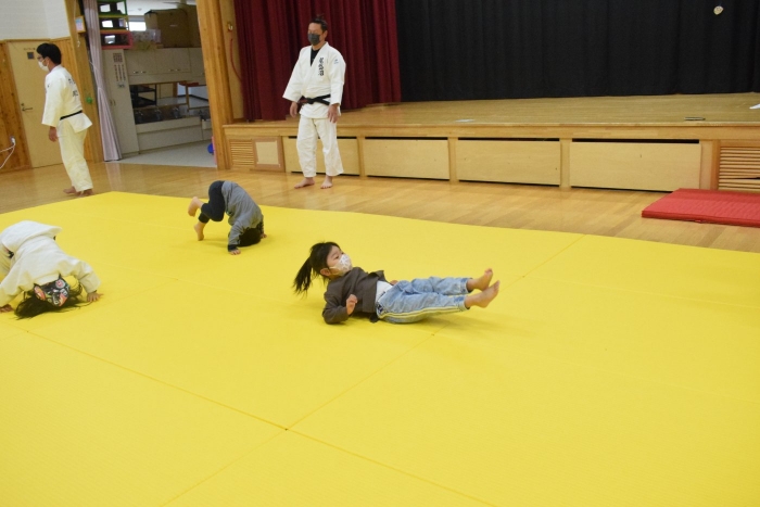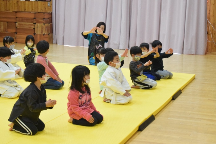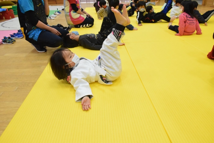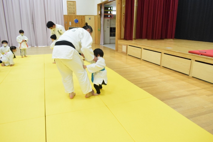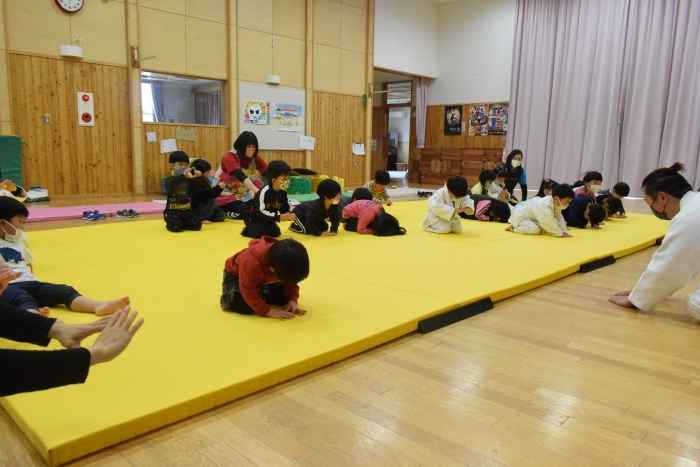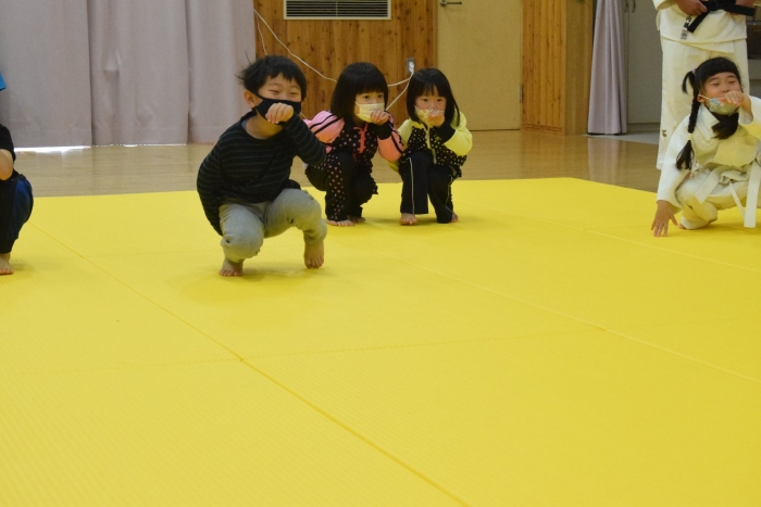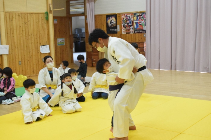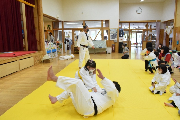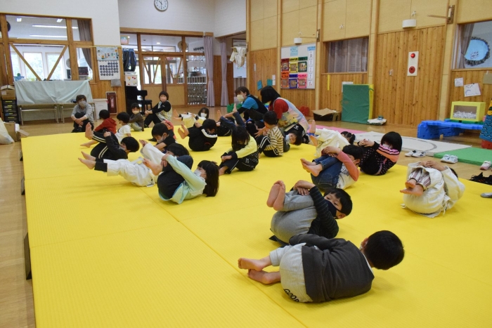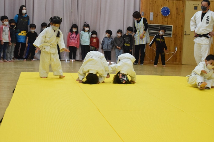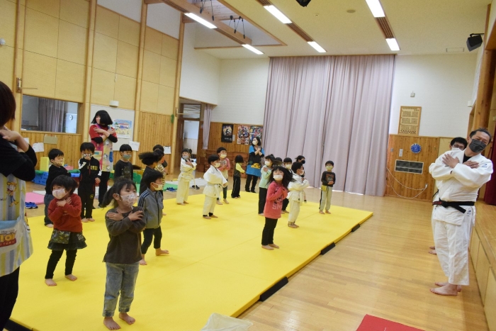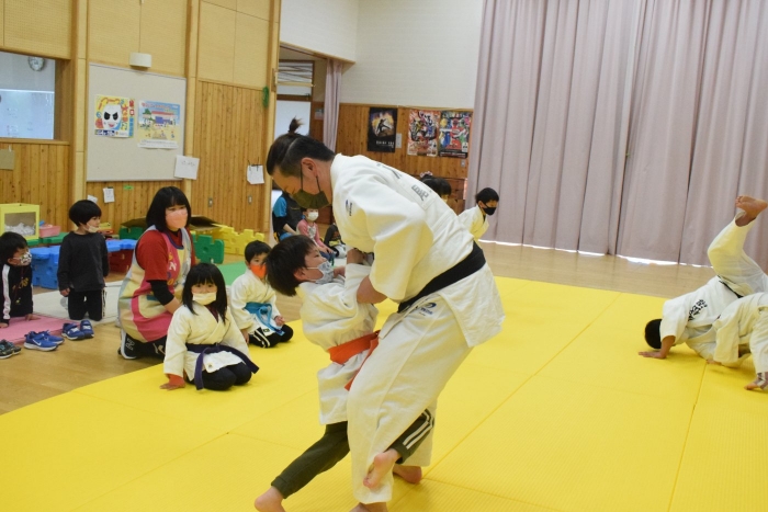 子どもたちに柔道の楽しさを感じてもらおうと尾岱沼柔道スポーツ少年団より2名の指導者の方が来てくださり、熱血指導をしていただきました! 園児もすでに4名の子が少年団に入っており、柔道着姿も凛々しく、みんなのお手本として頑張ってくれましたよ。「できなくても最後まであきらめない気持ちが大事!」「本当に強い人は弱い人をやっつけない」など人として大事なことも教わりました。 体は小さくても技を覚えたら大きな人でも投げ飛ばせるということがわかり、終わってみたら入団希望者が殺到!(笑)。毎週火曜日、金曜日の19時から東公民館で練習をしてるので見に来てください!とのことでした。関心のある方はぜひどうぞ!