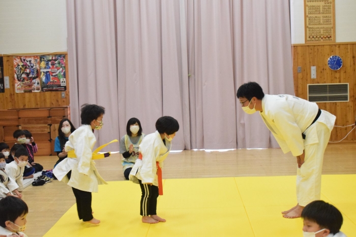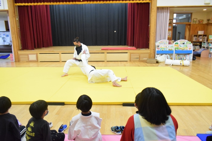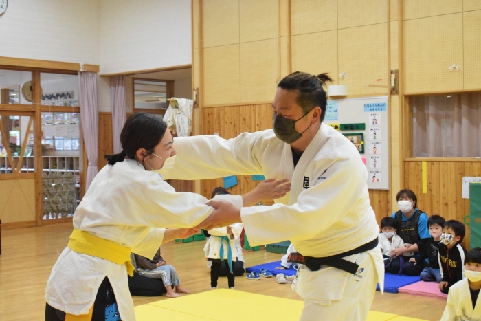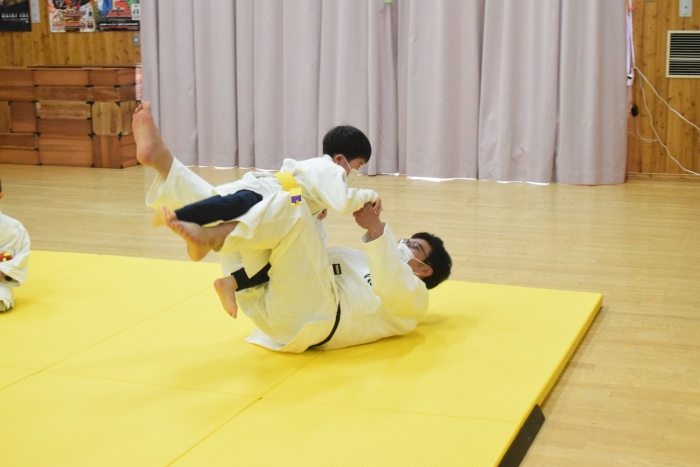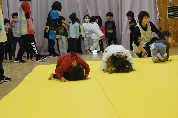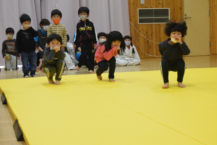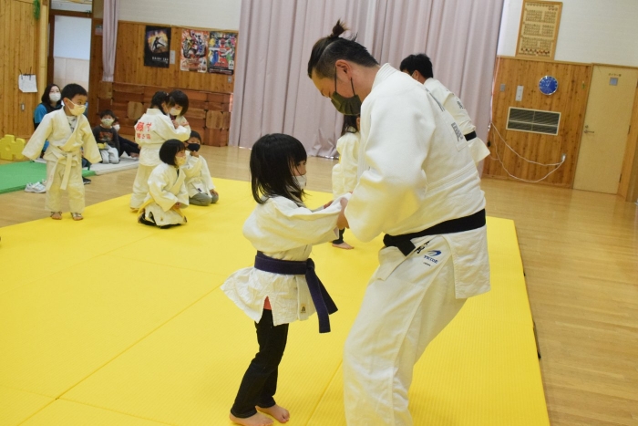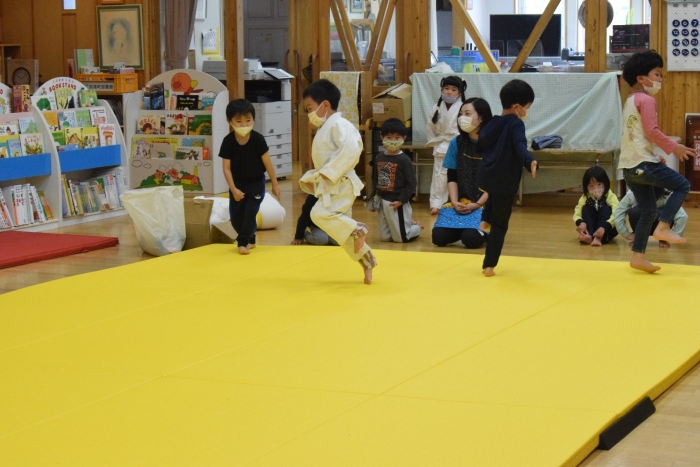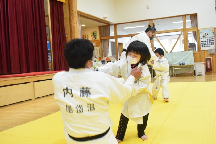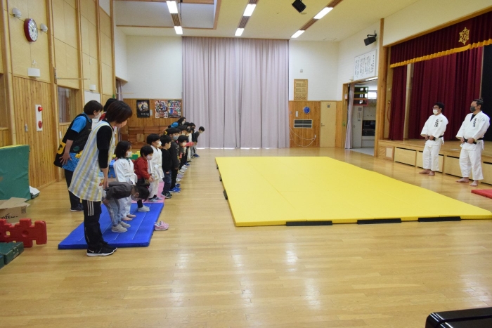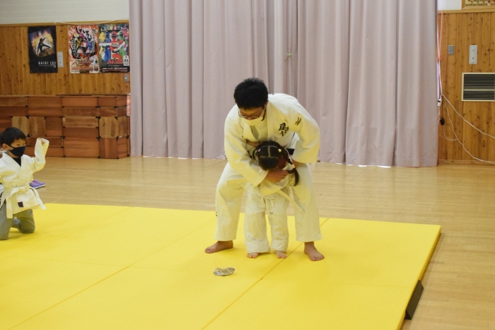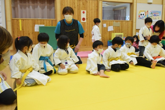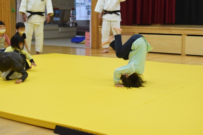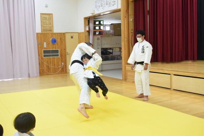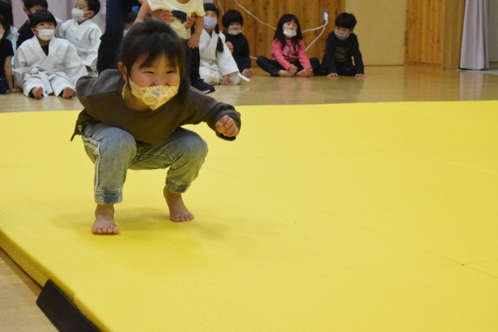 子どもたちに柔道の楽しさを感じてもらおうと尾岱沼柔道スポーツ少年団より2名の指導者の方が来てくださり、熱血指導をしていただきました! 園児もすでに4名の子が少年団に入っており、柔道着姿も凛々しく、みんなのお手本として頑張ってくれましたよ。「できなくても最後まであきらめない気持ちが大事!」「本当に強い人は弱い人をやっつけない」など人として大事なことも教わりました。 体は小さくても技を覚えたら大きな人でも投げ飛ばせるということがわかり、終わってみたら入団希望者が殺到!(笑)。毎週火曜日、金曜日の19時から東公民館で練習をしてるので見に来てください!とのことでした。関心のある方はぜひどうぞ!