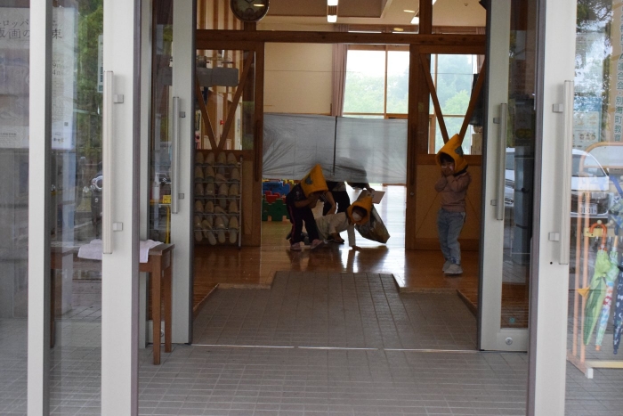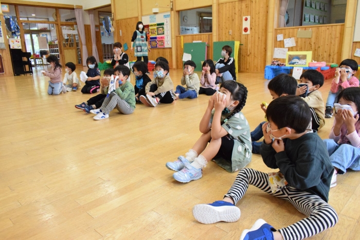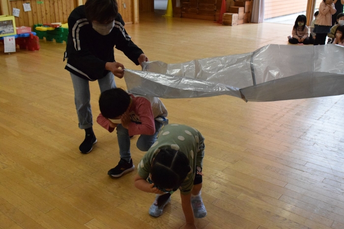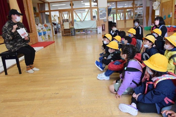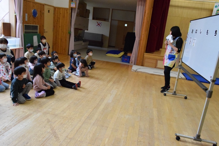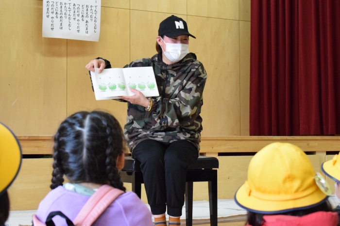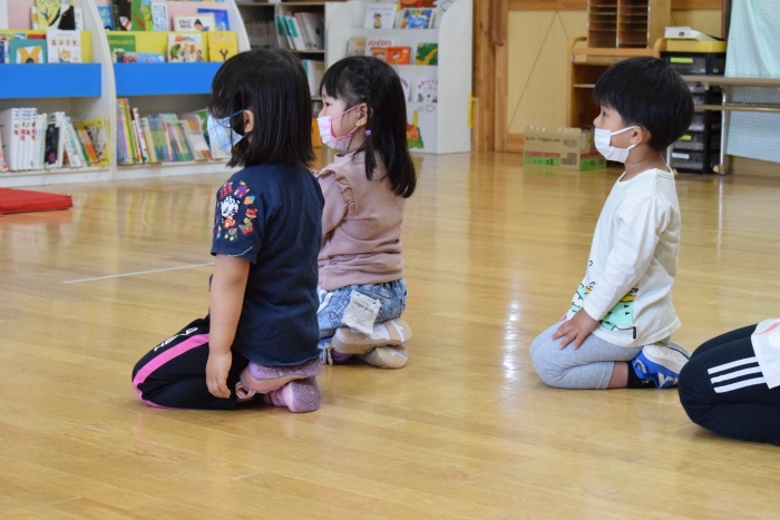 絵本読み聞かせ、昨日さくらさんができなかったので今日読みに来てくれました。みんな大好きなだるまさんシリーズ。なんと中国語での読み聞かせ。内容は知っているみんな、でも言葉が違う!いつもの”だるまさん”がまったく違った世界観に「すごい!」と感動。あまりの衝撃にもう一冊読んでもらいました。それにしても中国語は発音が難しい(◎_◎;)。子どもたちは雰囲気で言えちゃうところがすごい!
