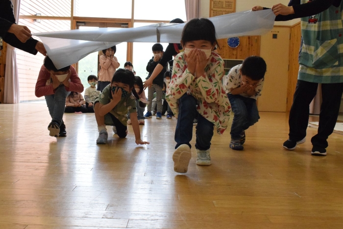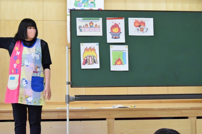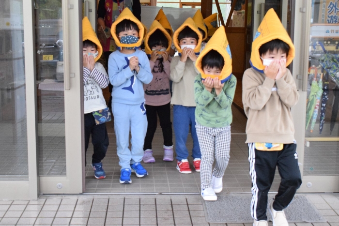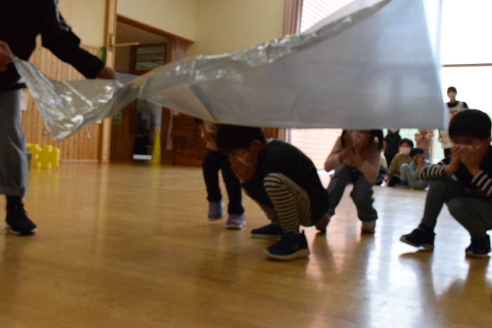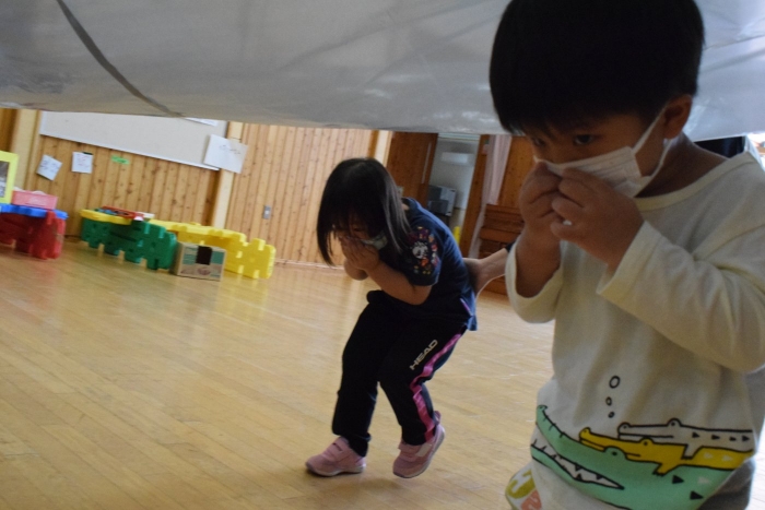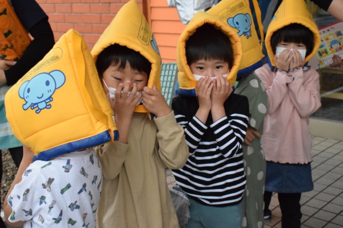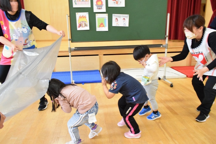 今日の避難訓練は地震発生からの火災発生ということで前回の地震のときの避難方法に加え、火事になったときの避難の仕方を学びました。火事になったら煙が充満してしまう、煙を吸ったら喉が火傷をしてしまうことや煙は下に降りてくるので姿勢を低くして避難する事が大事ということを実際に煙を想定しながら実感してもらいました。