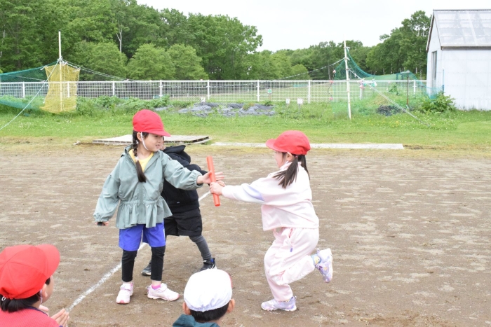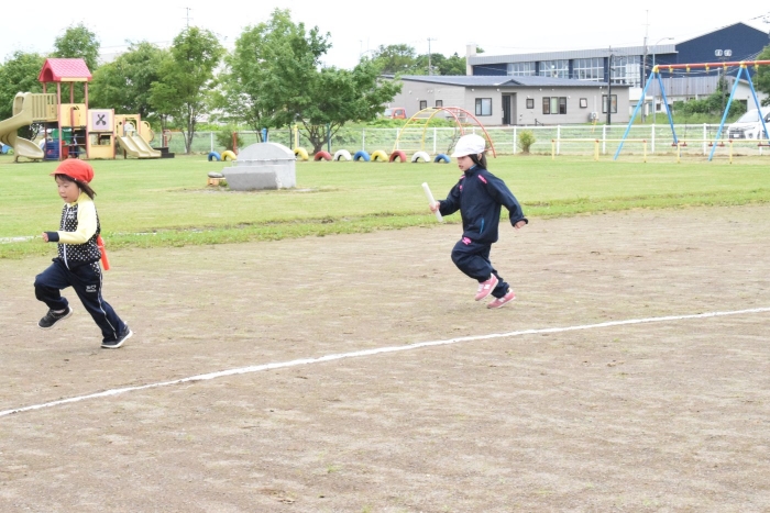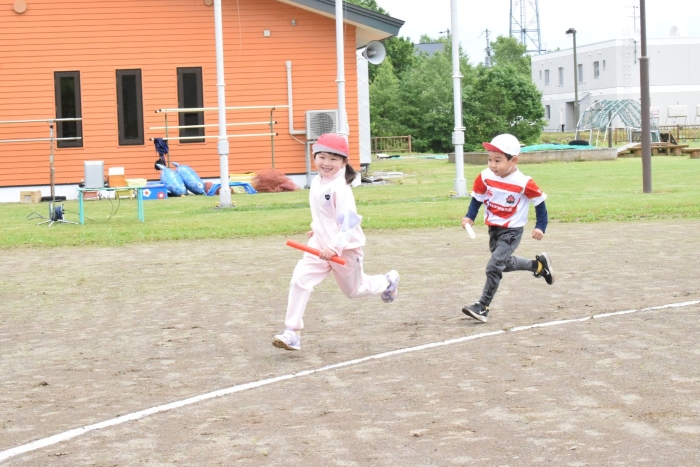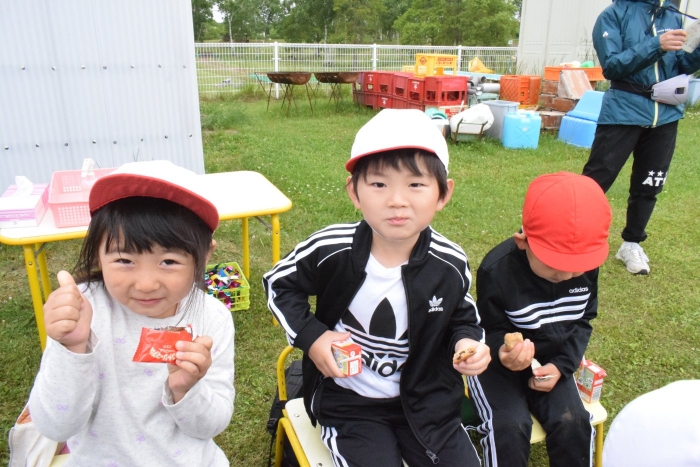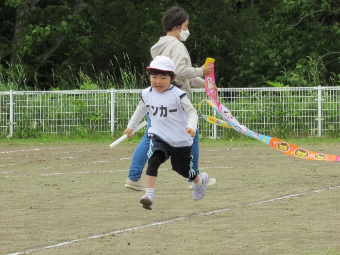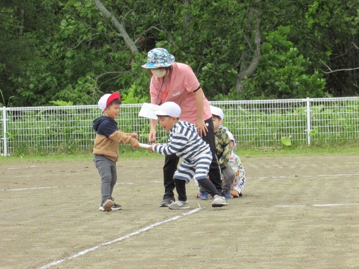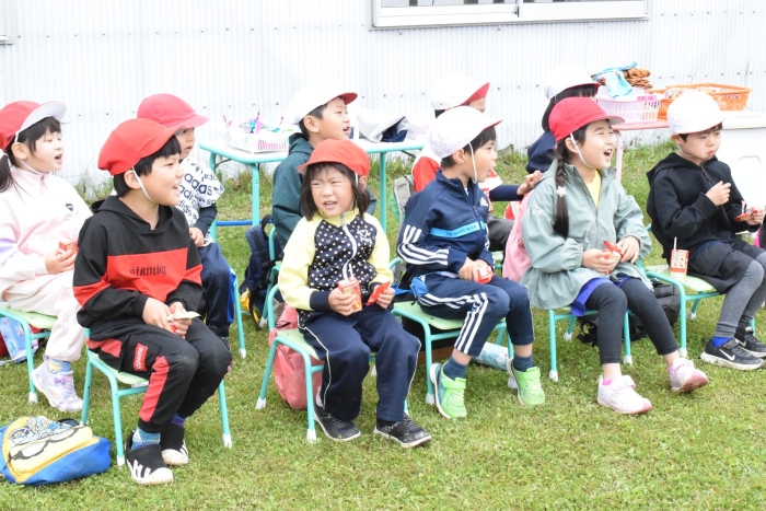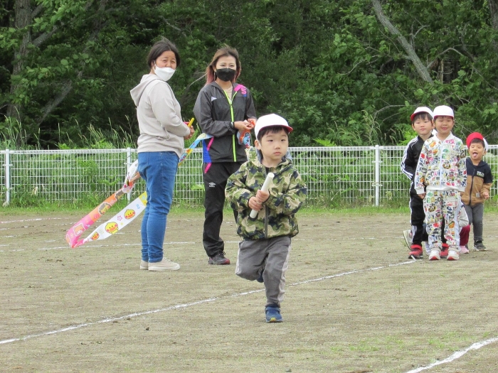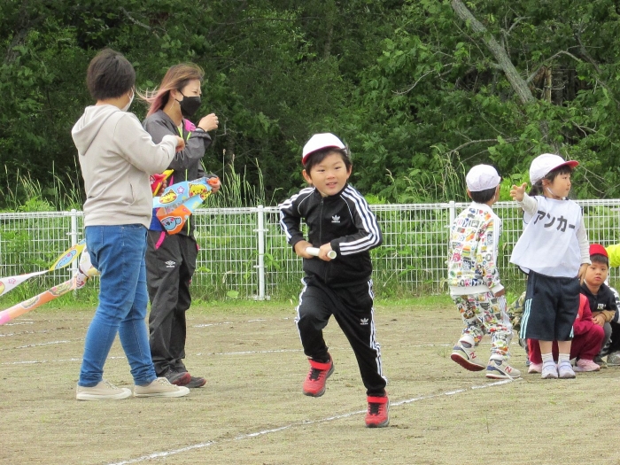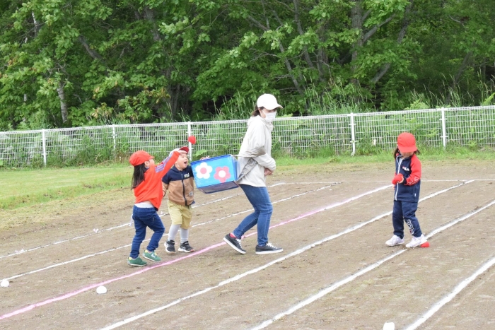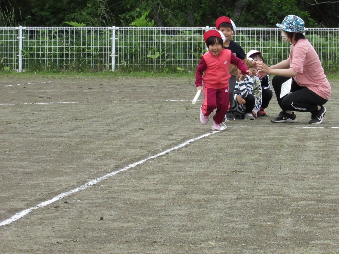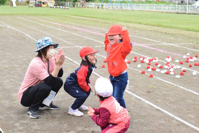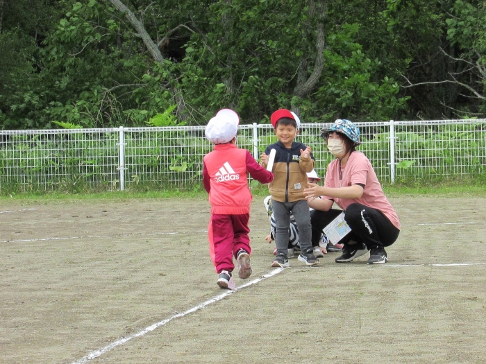 総練習パート2 2022年06月30日(木) 行事 うめさんは体力も限界に近づく後半戦。前園長坂内先生と全職員大森理恵先生から頂いたジュースとお菓子を食べてエネルギー注入!差し入れありがとうございました。 運動会楽しい♬ まだ頑張るよ! 余裕がありそう まだまだがんばります! がんばるぞー! うめさん。追いかけ玉入れ。ゆっくり逃げてるけど・・・ 赤組の勝ちでしたー! ももさん。ガゴが高くなってスピードもアップ! 白組の勝ちでしたー! さくらさん。レベルアップ!速い速い 白組の勝ちでしたー! モグモグタイム(^^♪ うふっ。おいしー これでまた頑張れそう おやつタイムうれしい~ 勇気100倍アンパンマンジュース リレーのコーナーワークにご注目 うめさんは4人しかいないのでももさんと合同で うめさんからももさんへ 最後まであきらめずに走る姿がステキ リレーは赤組の勝ちでしたー! ヤッター! さくらさん。バトンの受け渡しを練習した成果は? PTA会長からのお褒めの言葉 メダル授与の代表児