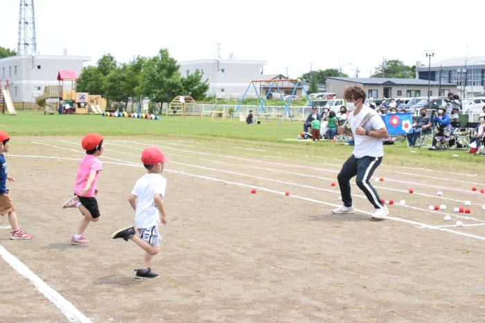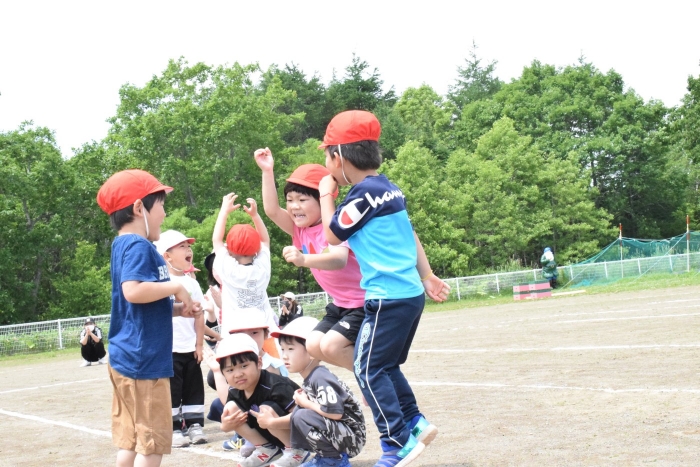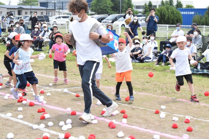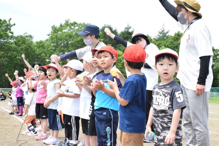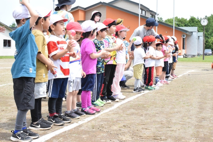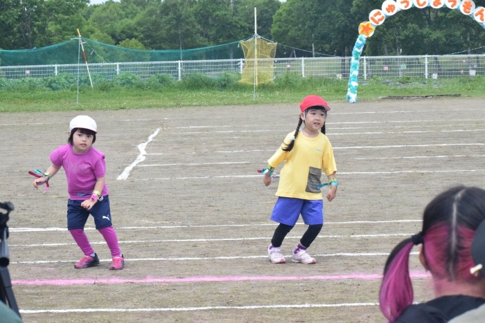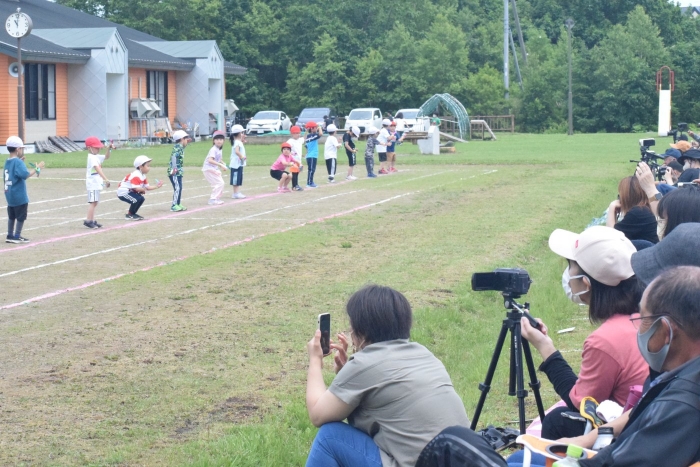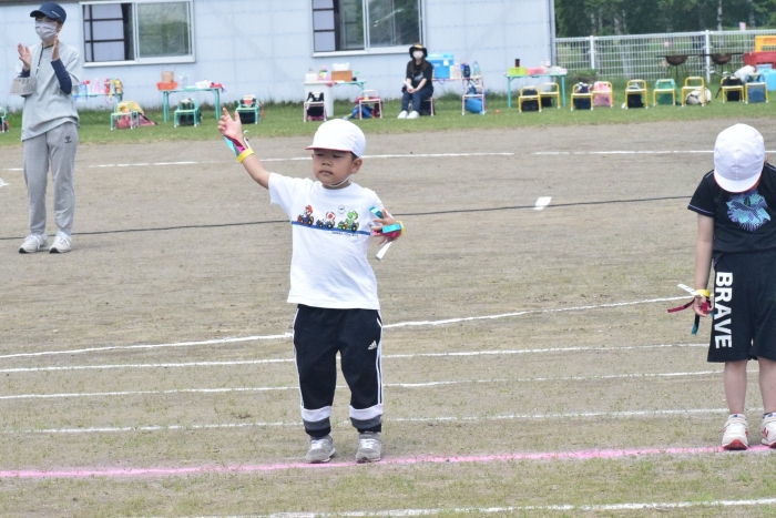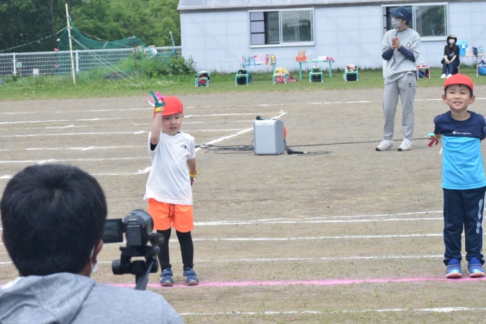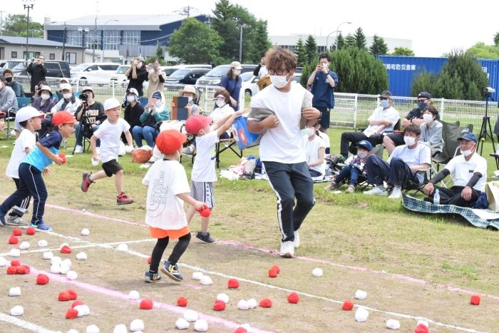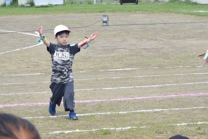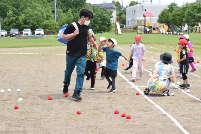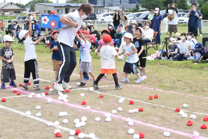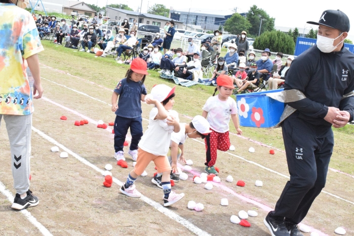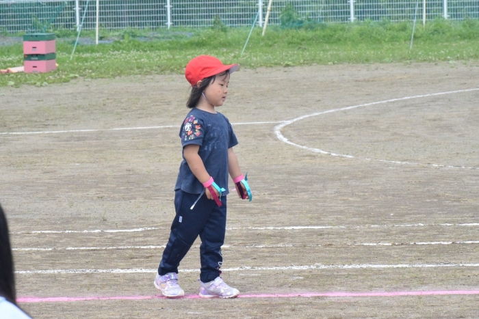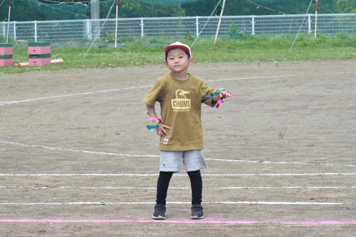 例年の玉入れから、今年はちょっとハードな「追いかけ玉入れ」に挑戦。お父さんたちにお手伝い頂いて楽しい競技になりました。思ったよりもたくさん入っていて、練習の成果が出ていたようです。お手伝い頂いたお父さん方、お疲れさまでした。ありがとうございました。