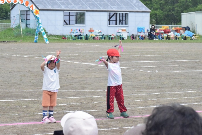 お遊戯「スターラブレイション」ではキラキラ飾りをつけて家族の目の前で踊りを披露しました。ちょっと恥ずかしかったようですが愛らしい姿をご覧いただけたことと思います。