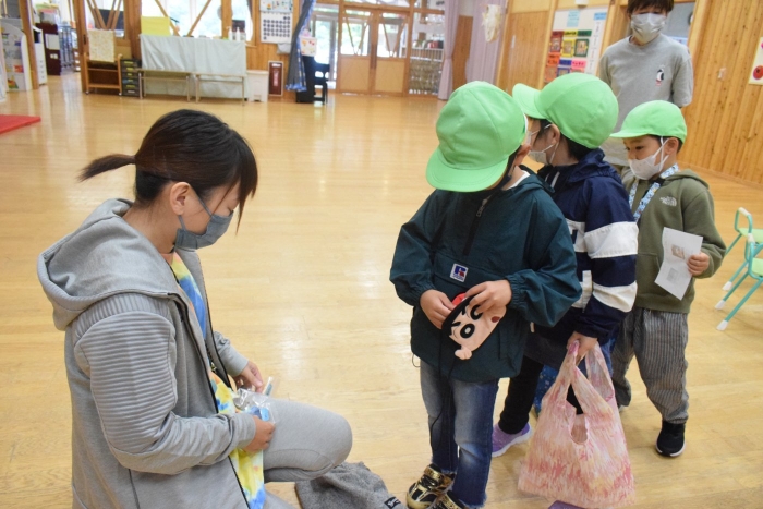 さあ、お買い物に出発!一人ずつお金をもらってしっかり財布にしまいます。お買い物メモも持って。