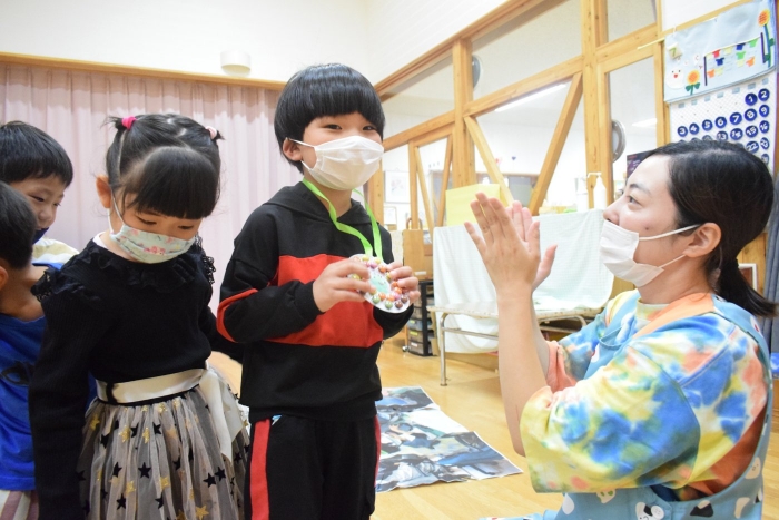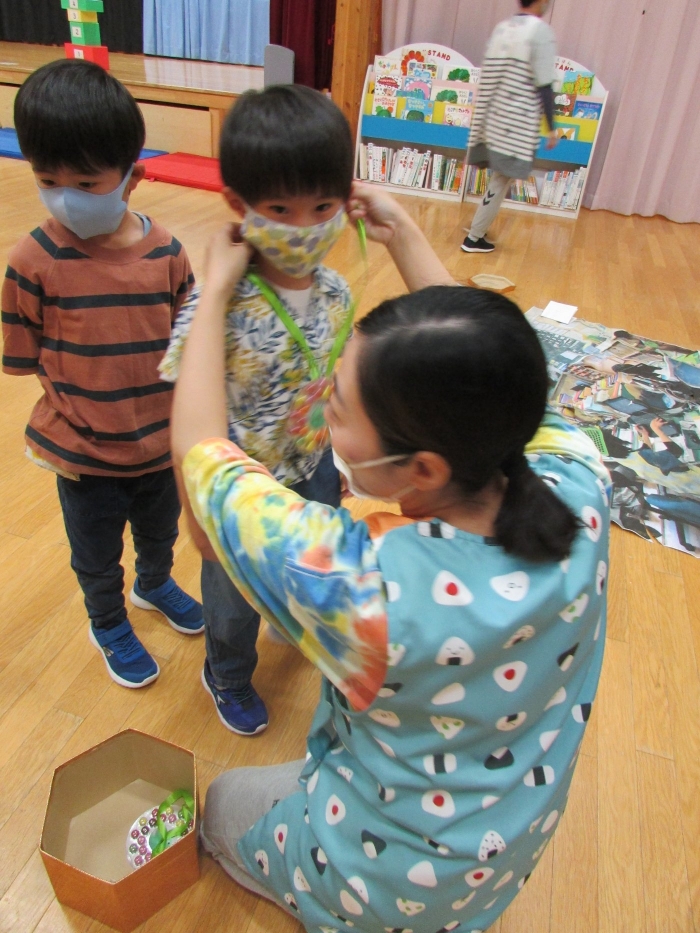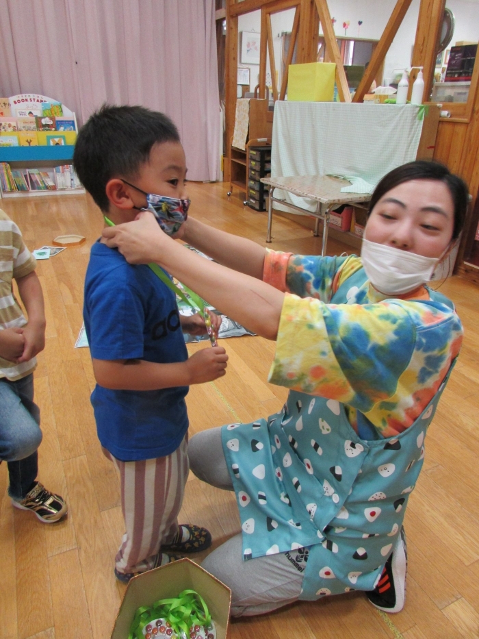 さくらさん「お楽しみ会」パート3 2022年07月15日(金) 行事 ゲームの続きです。 今度はちょっと難しい パズルの破片 それぞれ見つけてつなぎ合わせると 完成!ここはどこ? あっ、先生のお部屋だ! この辺にけちょんぴんがいるはず いたよ! 宝箱の中には けちょんぴん、かわいい! 最後もミッションクリア メダルを貰いました みんなで力を合わせてクリアできました! まだまだ続きます。