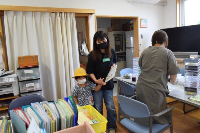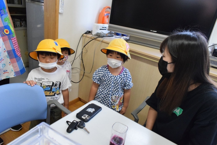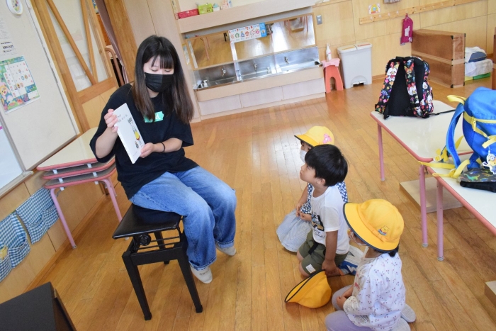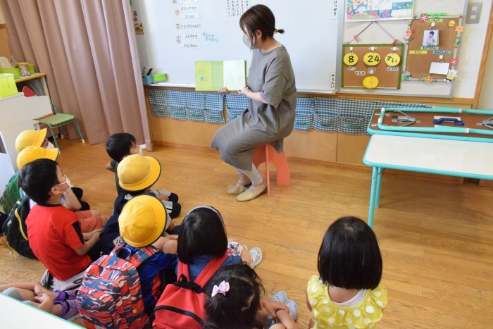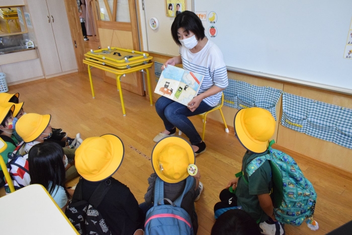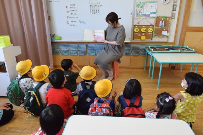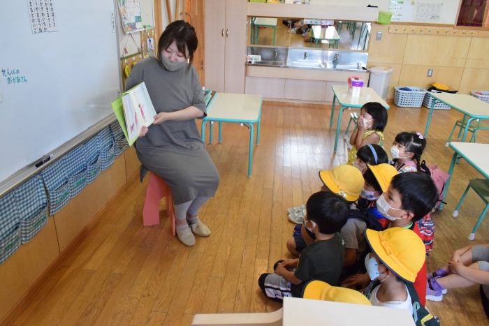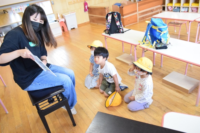 お母さん読み聞かせ 2022年08月25日(木) 行事 昨日はお母さん読み聞かせがありました。去年も読んだことがあるベテランお母さんたち。でもやっぱり「緊張する~(>_<)」汗を掻きかき頑張ってくれました(^_-)-☆ありがとうございました! うめさんは『もこちゃんのいちばんおいしいぱん』 全員で呼びに来たうめさん(^^♪ うめさんに連行されていきます(笑) 3人だったから緊張が和らぎました(笑) 前のめりで興味津々 ももさんは『むしばいっかのおひっこし』 我が子のお迎えに思わず「帽子反対だよ!(笑)」 「あ~緊張する~」 みんなに見られて汗が止まらない( ;∀;) 歯磨き好きになってほしい願いを込めて さくらさんは『あなたがうまれたとき』 お互い照れちゃいますよね~( ;∀;) ちょっと難しいかな、と思ったけど。 みんな真剣に聞いてくれて 読んでるうちにじ~んときた、いいお話でした。