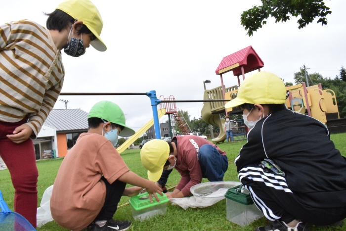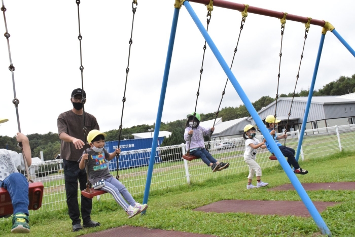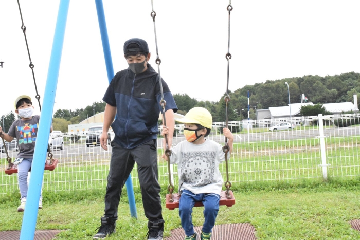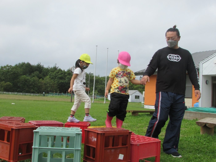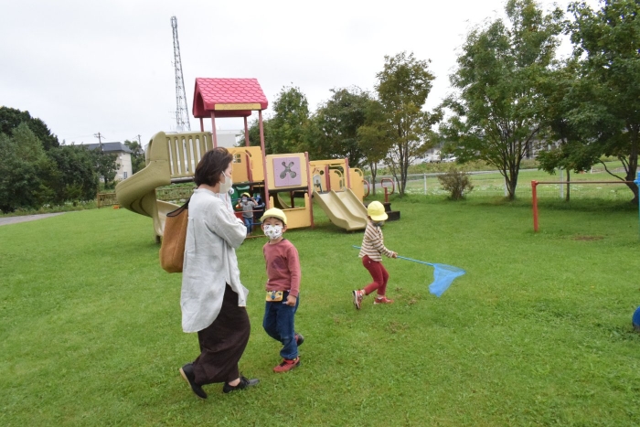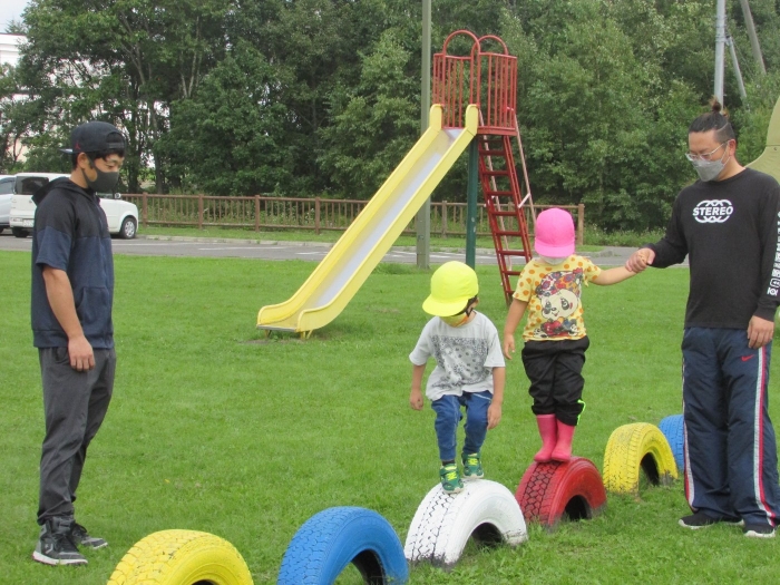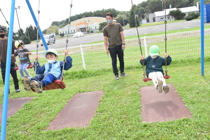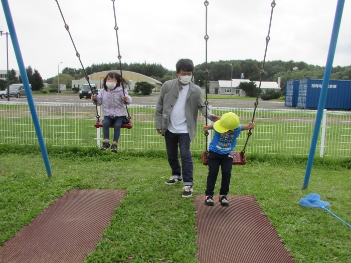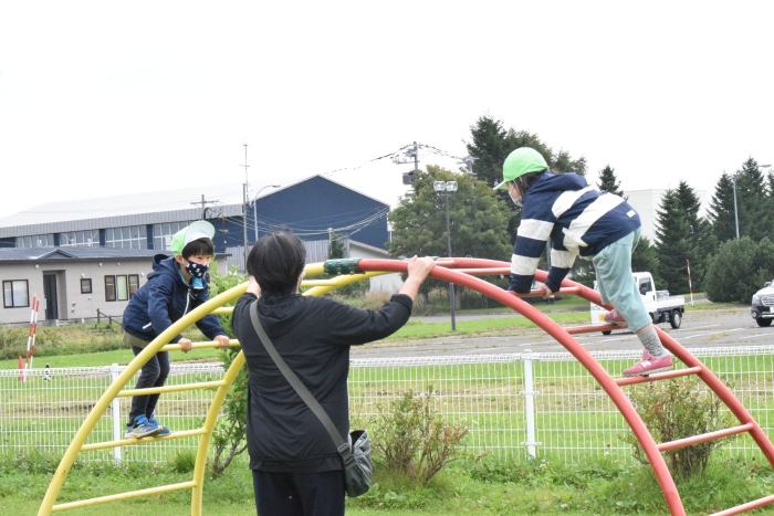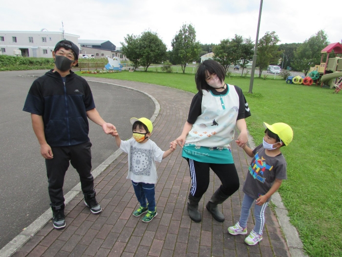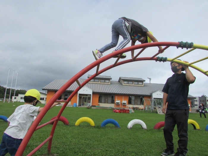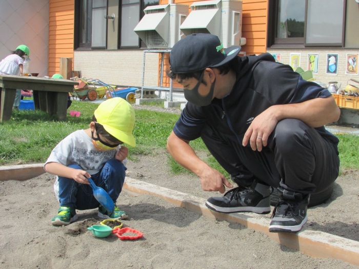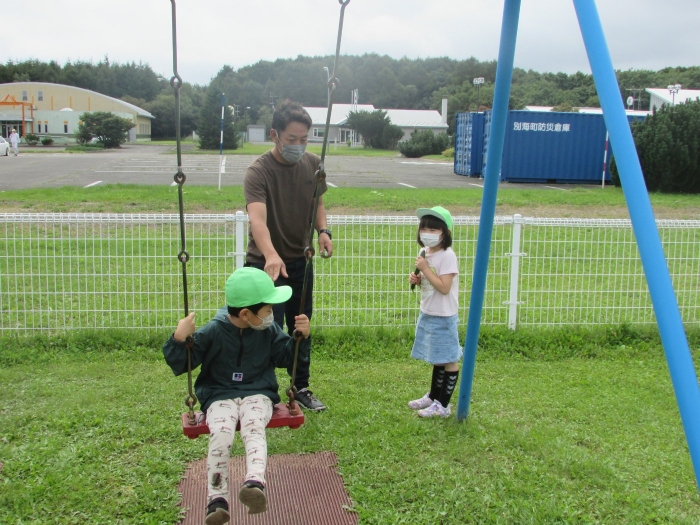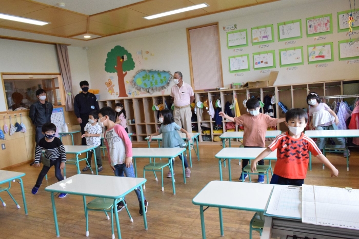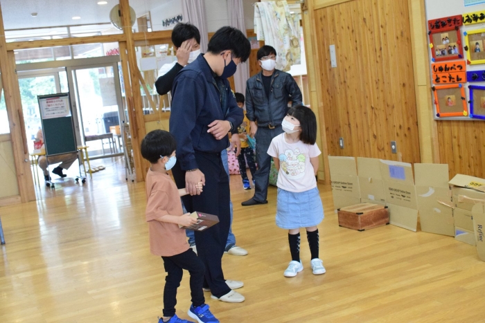 今日から7日までの期間、日頃幼稚園に来る機会の少ないお父さんや祖父母の方に幼稚園に来ていただき、朝の会や遊びの様子を参観していただく機会を設けました。朝の会や外遊びの様子を通して、お子さんの成長や幼稚園教育で培っていきたい力などをお話させていただきました。子ども達は幼稚園で会うお父さんやおじいちゃん、おばあちゃんが新鮮で、頑張っている姿を見てもらいたくて張り切って活動に参加していました。お子さんの幼稚園での様子を見て感じたことなどがありましたら、お母さんに伝えて連絡帳でお知らせ頂けると嬉しいです。よろしくお願いします。
