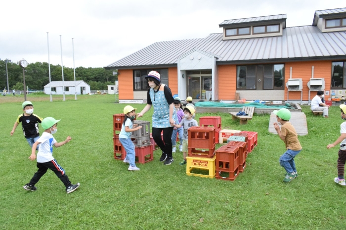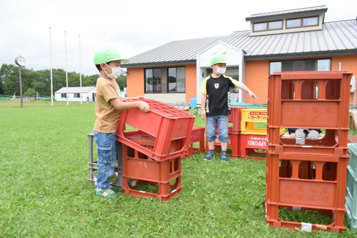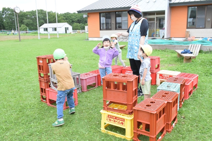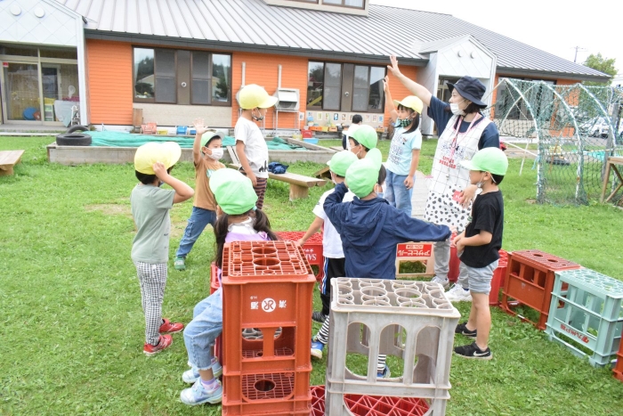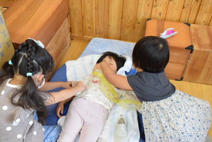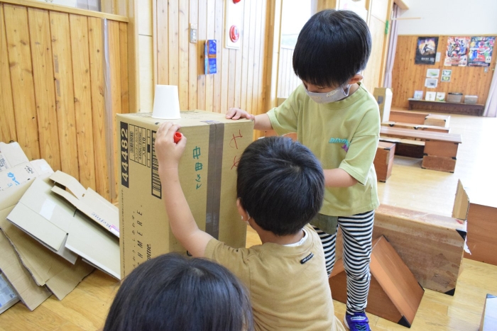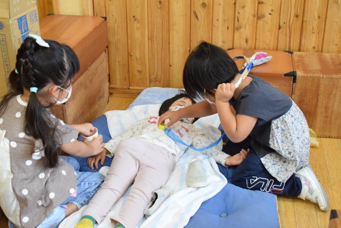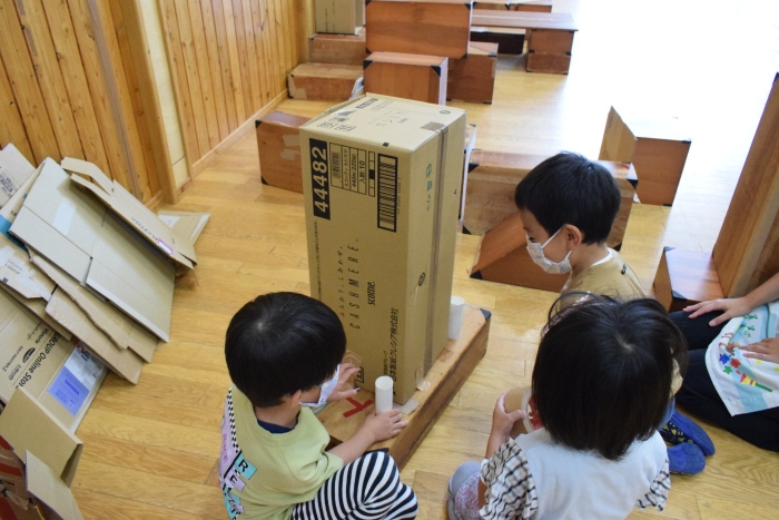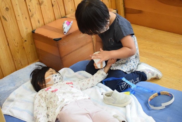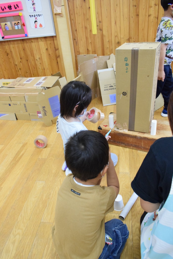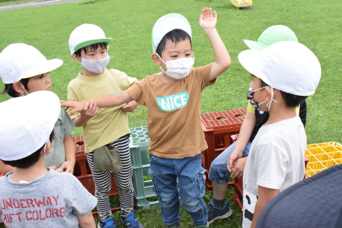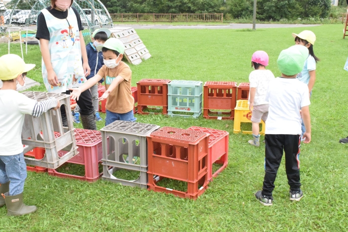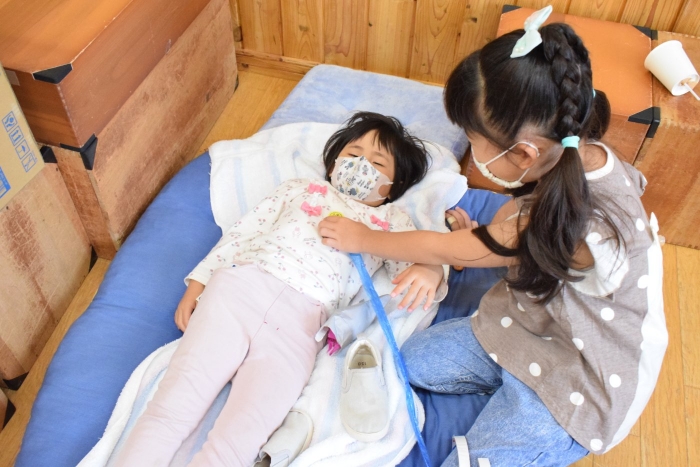 ゾンビごっこもさくらさんが中心になって、もっと面白くしようと隠れる場所を作ったり、牢屋を工夫したりしながら遊んでいました。自分の考えたことをみんなに伝える、お友だちの考えを聞く、ルールを確認する、イメージを共有する、など集団遊びからいろいろな学びが広がっていきます。
