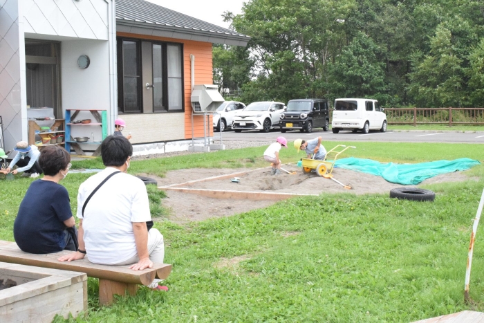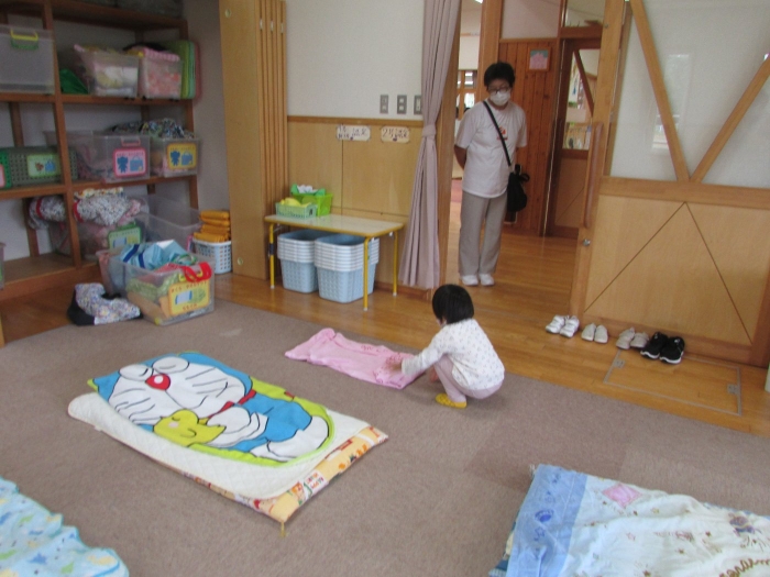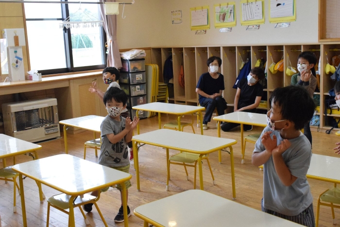 参観日二日目の今日はお父さん、おばあちゃんが3名来てくださいました。人数も少なかったので朝の会や外遊び、給食の時間まで見ていただくことができました。