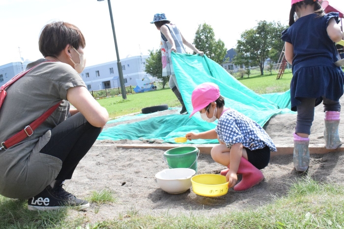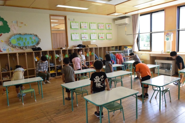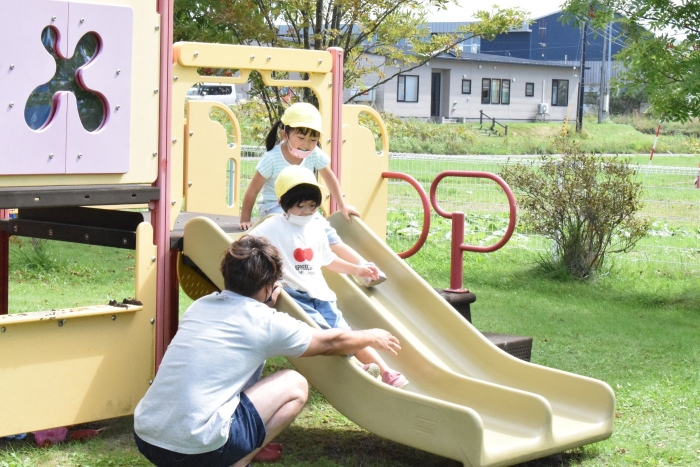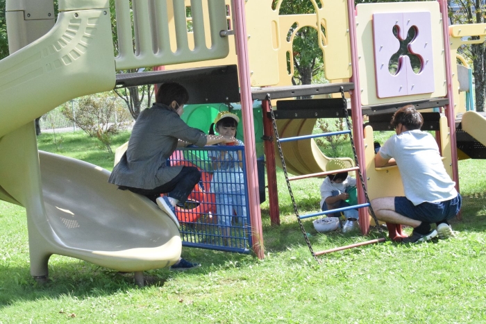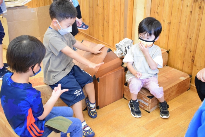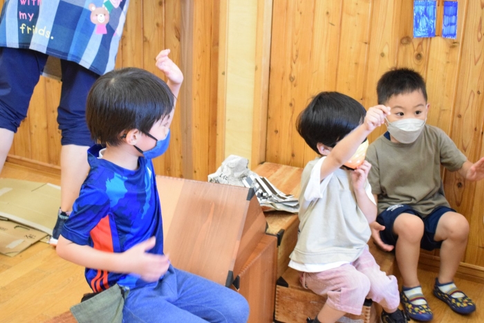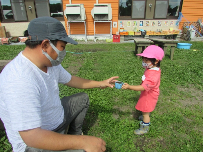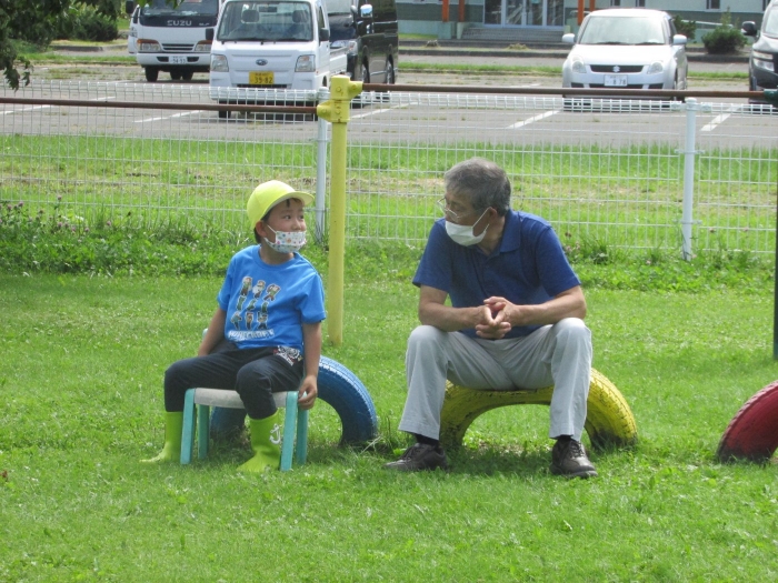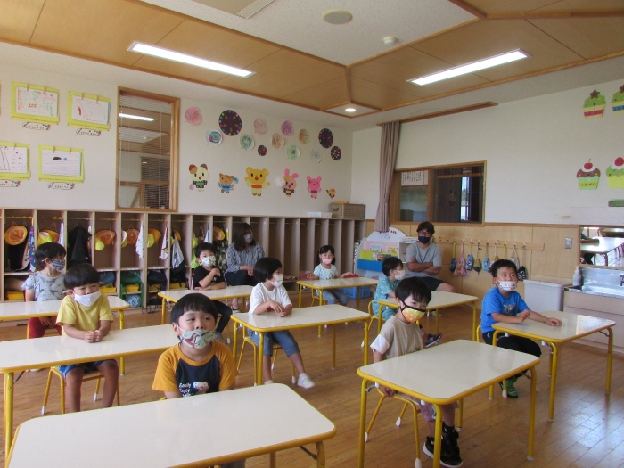 殆どの方に給食時間まで見ていただく事ができ、家では食べないものも食べていたり、小食のはずなのにたくさん食べていたり、とお子さんの違った一面に感心したり驚いたり、家では見せない顔がたくさん見られていたようです。「こんなに長く幼稚園に居たことがない」というほどたっぷりと参観ができたようです。3日間の短い期間でしたが延べ29名のお父さん、おじいちゃん、おばあちゃんにご来園いただきました。おうちでのお子さんの様子なども聞けて、より深く子どもたちのことを知ることができました。ありがとうございました。