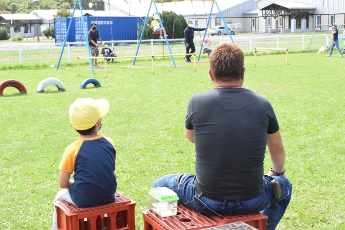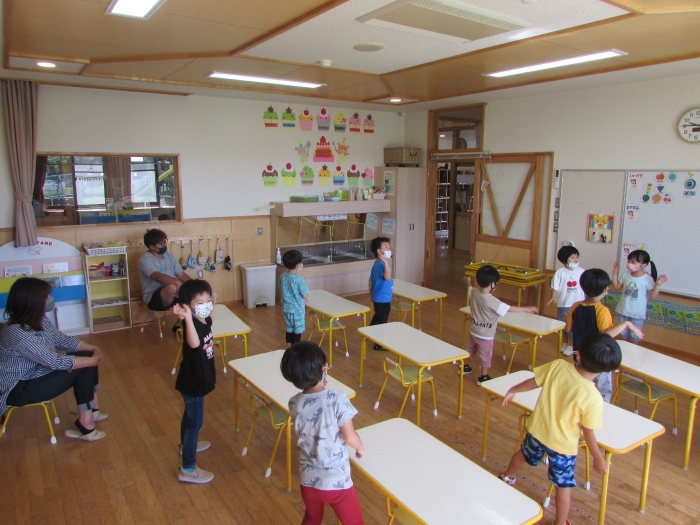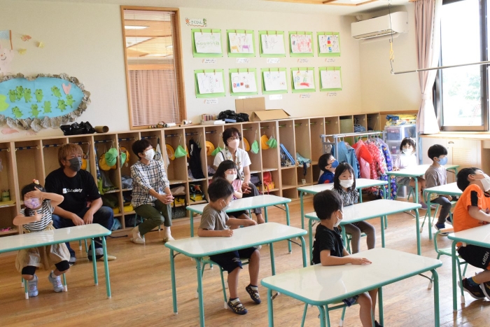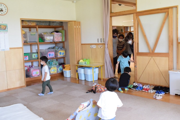 保育参観最終日の今日は12名のお父さんや祖父母の方が子どもたちの様子を見に来てくださいました。