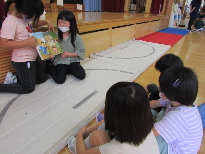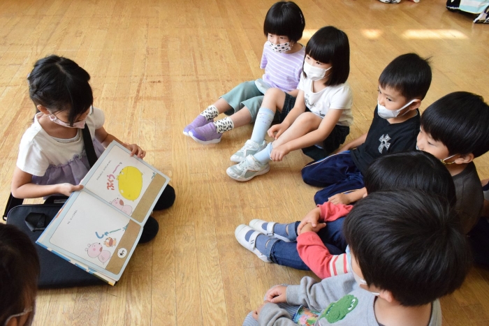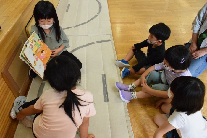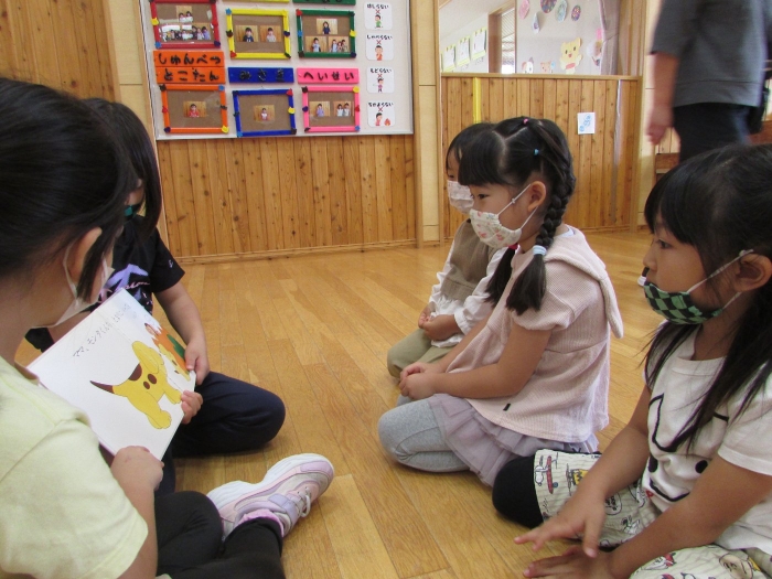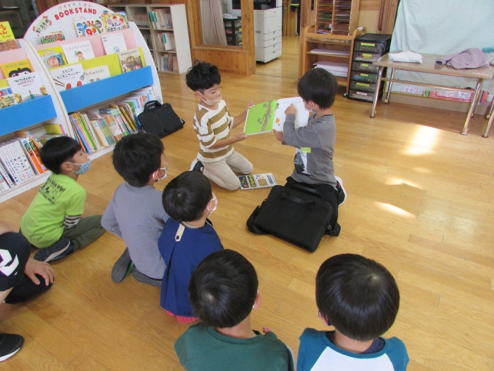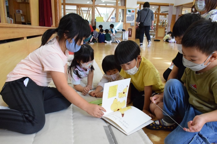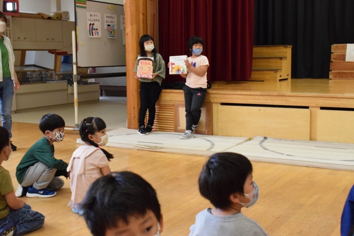 今日は小学校一年生が園児たちに絵本の読み聞かせをしたいということで幼稚園に来てくれました。