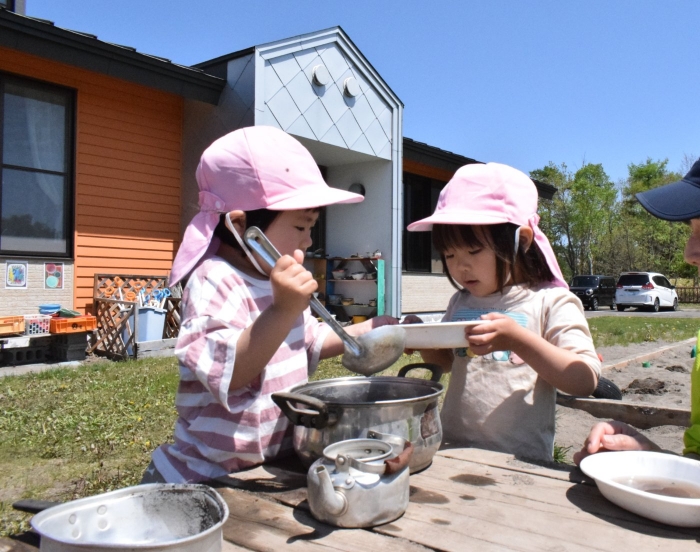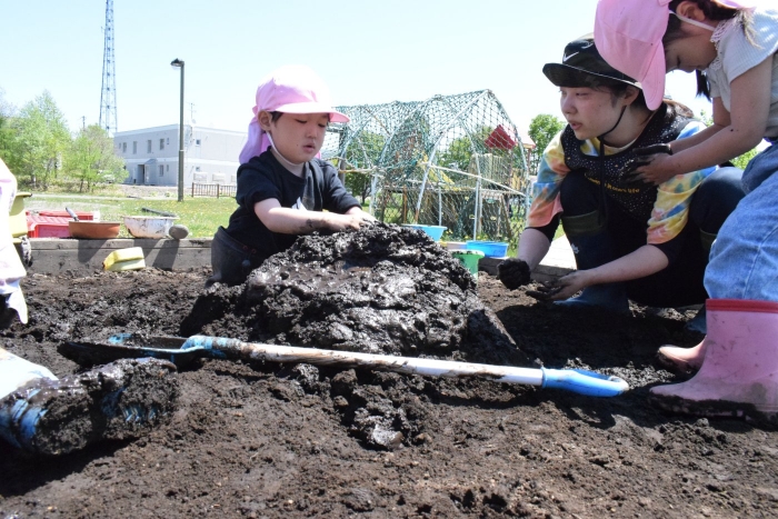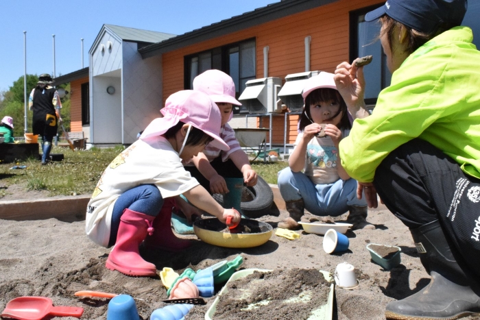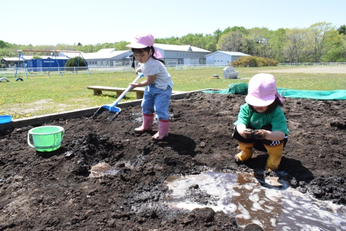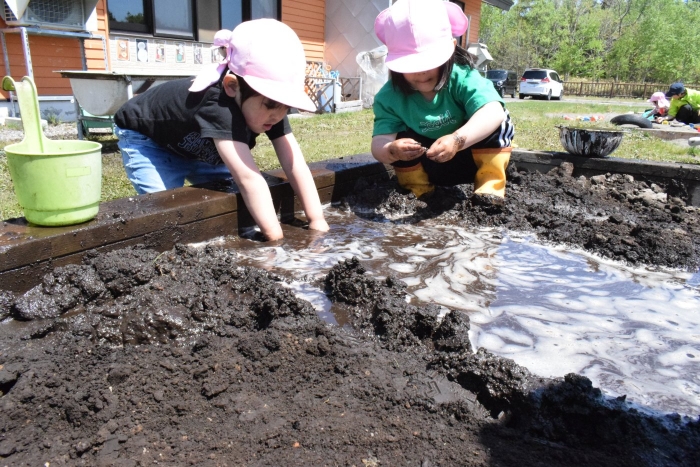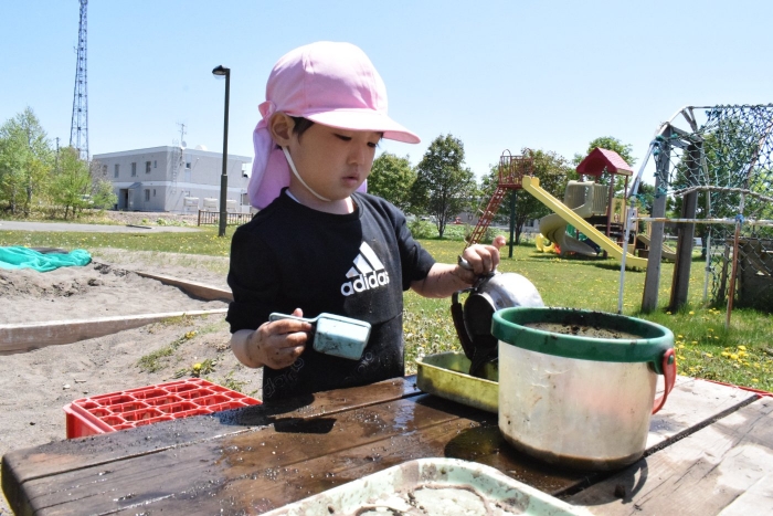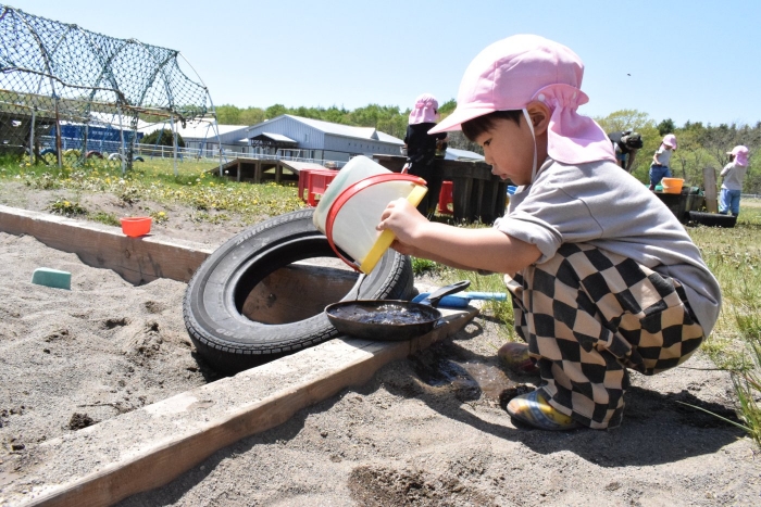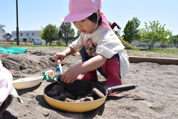 私は砂場が好きなんだ~。茶色い砂が固まることがわかって。