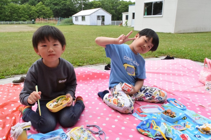家では食べないレタスまでしっかり食べていたさくらさんでした。ももさん、さくらさんは全員完食!「おいしい~」と何回も言いながら食べていましたよ。お母さん(お父さん)の愛情がたっぷりと感じられたお弁当だったと思います。
