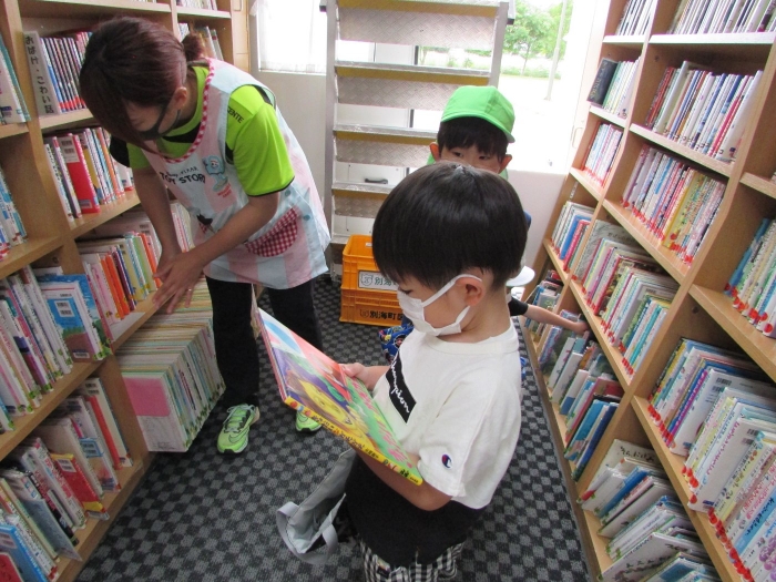 絵本を引っ張り出して絵を見て選んでいました。